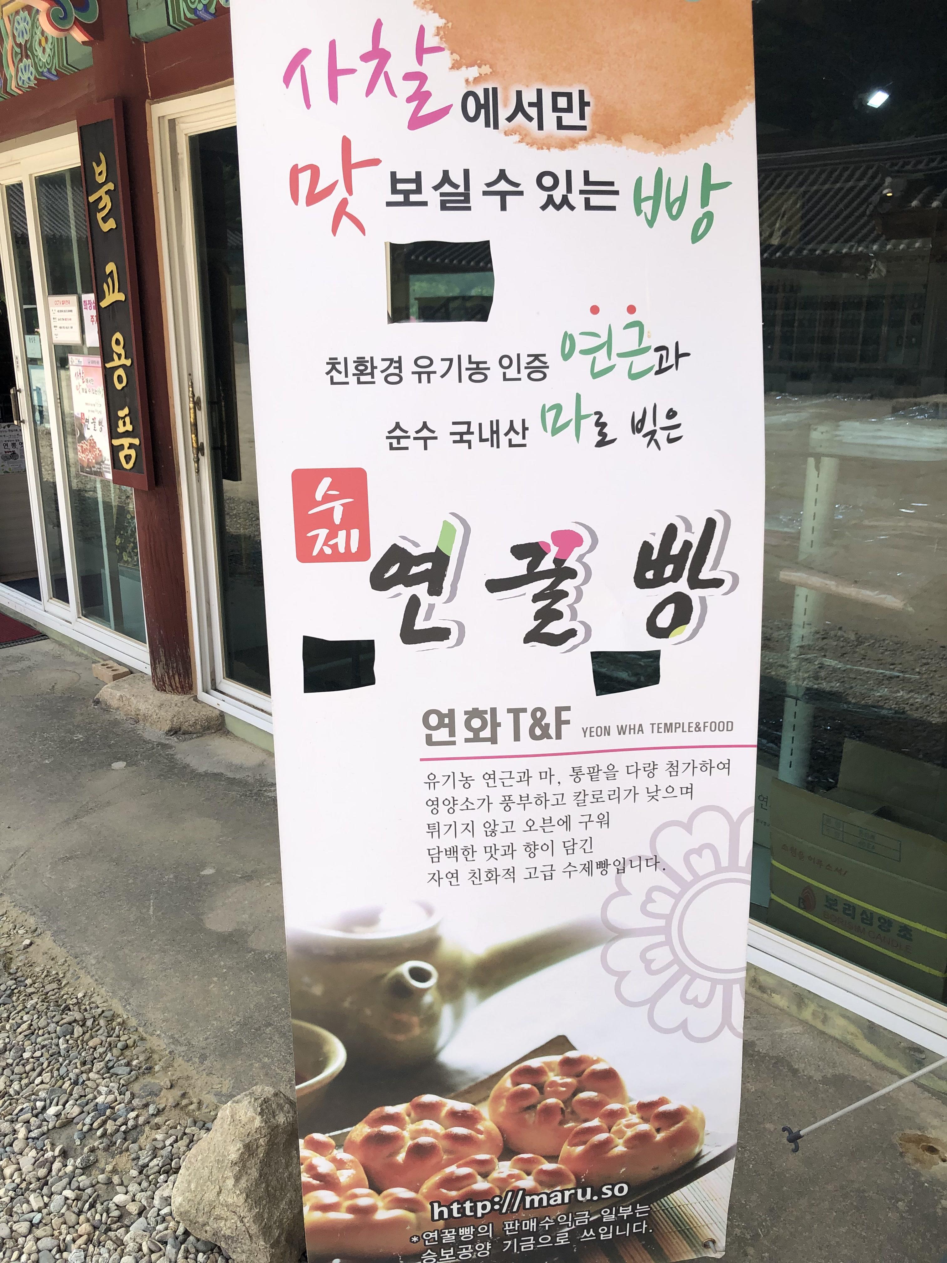 불교용품을 파는 곳인데, 연꿀빵부터 여러 가지가 있나 보다.