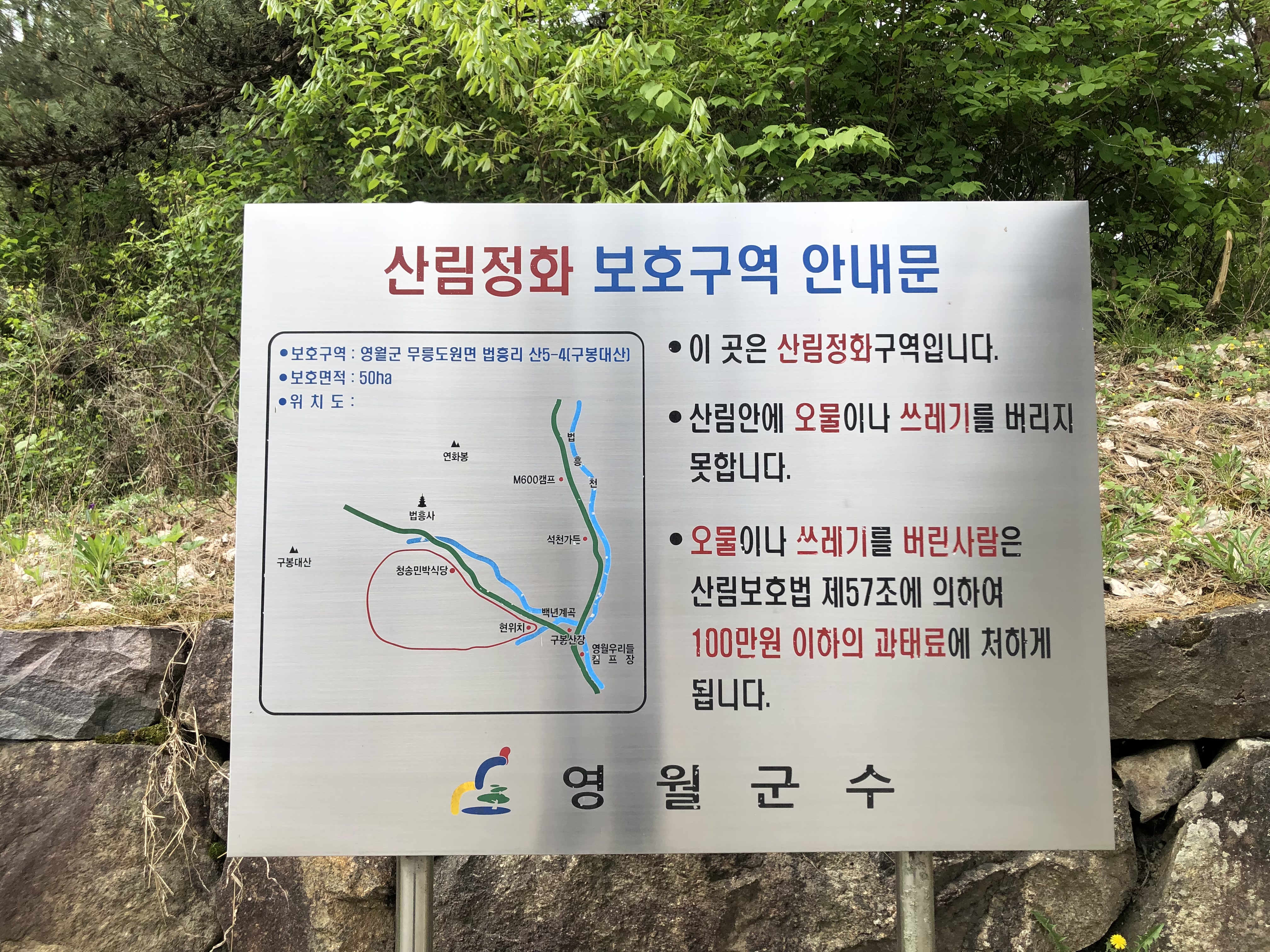 등산을 하거나 참배를 하거나 입구에서 철저한 설명으로 법규를 잘 지킬 수 있도록 산림정화 보호구역 안내문이 적혀있다.