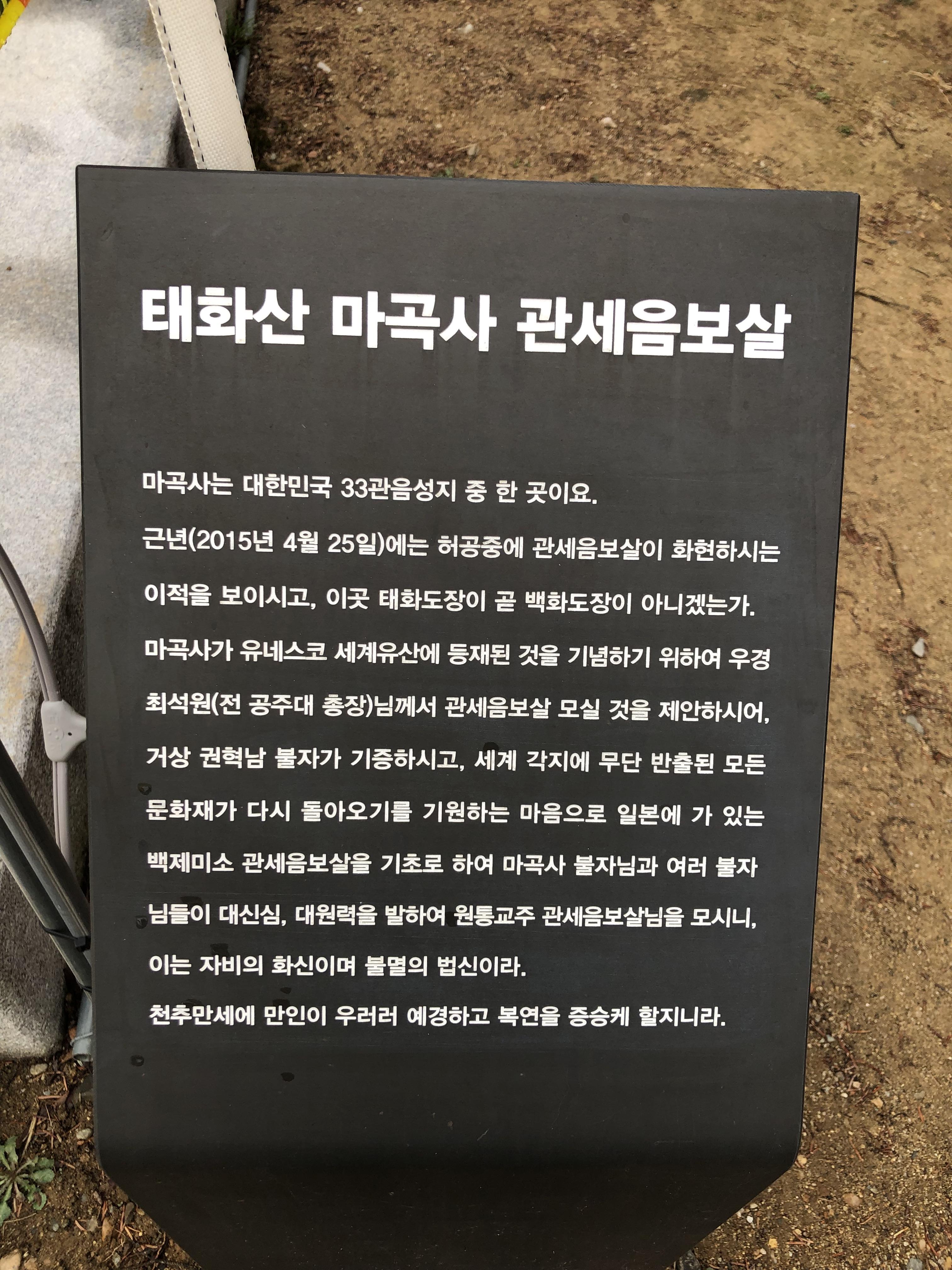 근년 2015년에 관세음보살님이 허공에 화현 하셨다고 하니 마곡사가 얼마나 좋은 도량인지 알 수 있다.