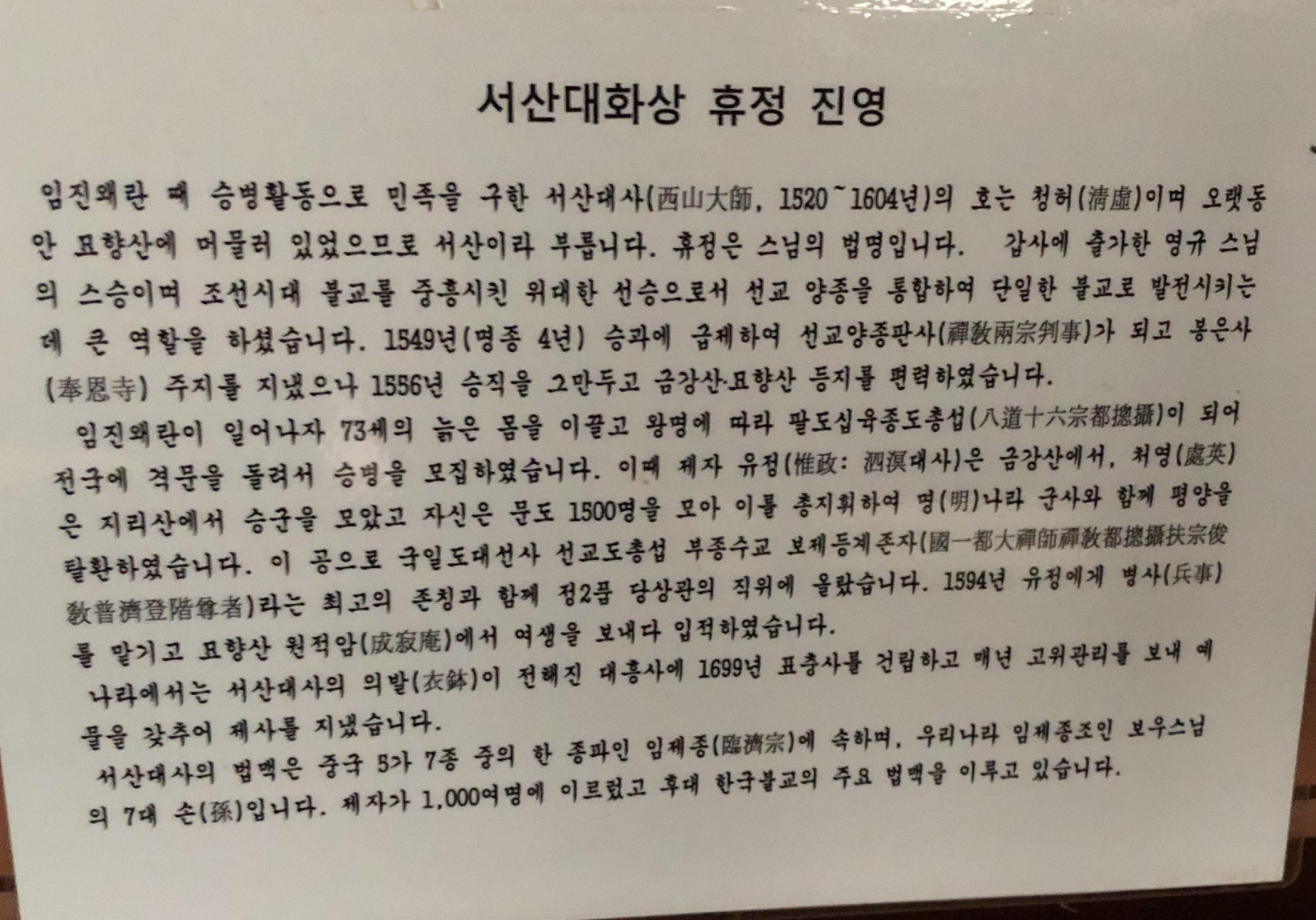 서산대사의 제자이신 사명대사