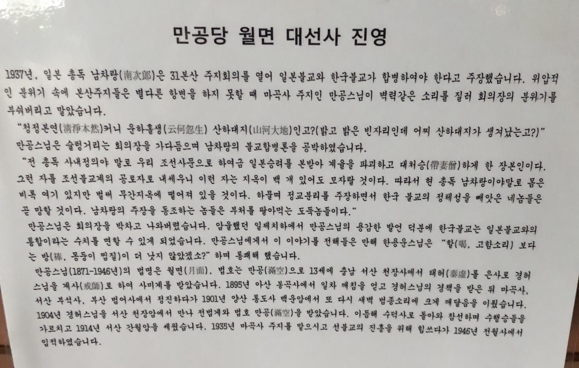 만공당 월면 대선사 진영