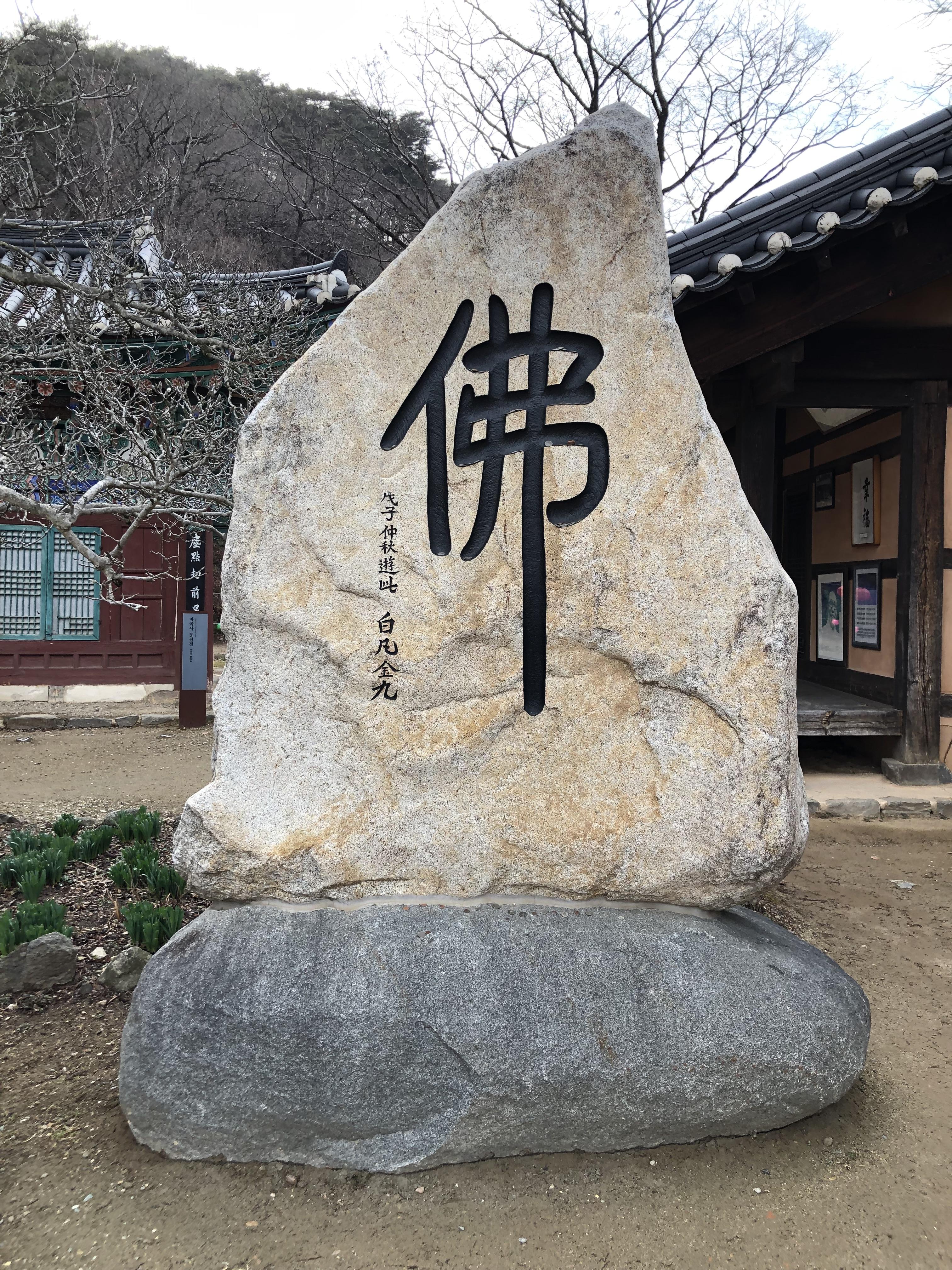 마당에서 백범당을 바라보면 큰 돌이 있다.