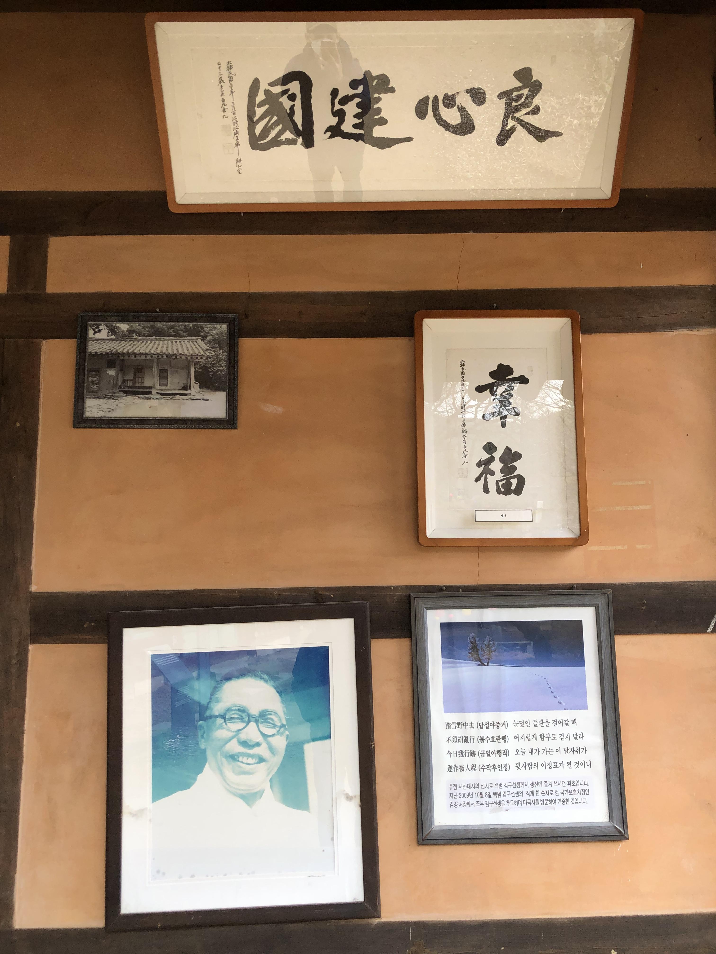 한쪽 벽면을 보면 백범당의 예전 모습을 담은 사진과, 선생께서 생전의 모습을 찍으신 사진이 걸려 있다.
