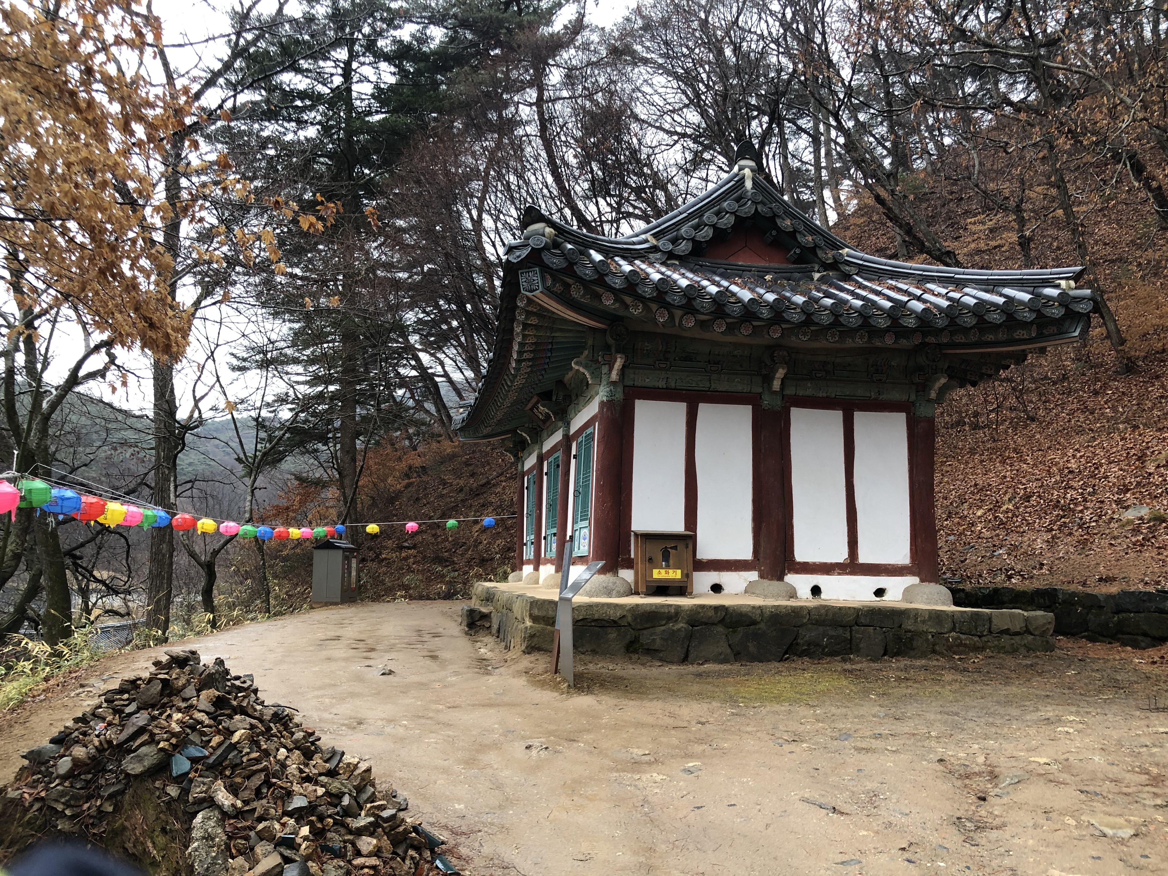 저 멀리 보이는 산신각의 지붕이 팔작지붕인 것을 알 수 있다.