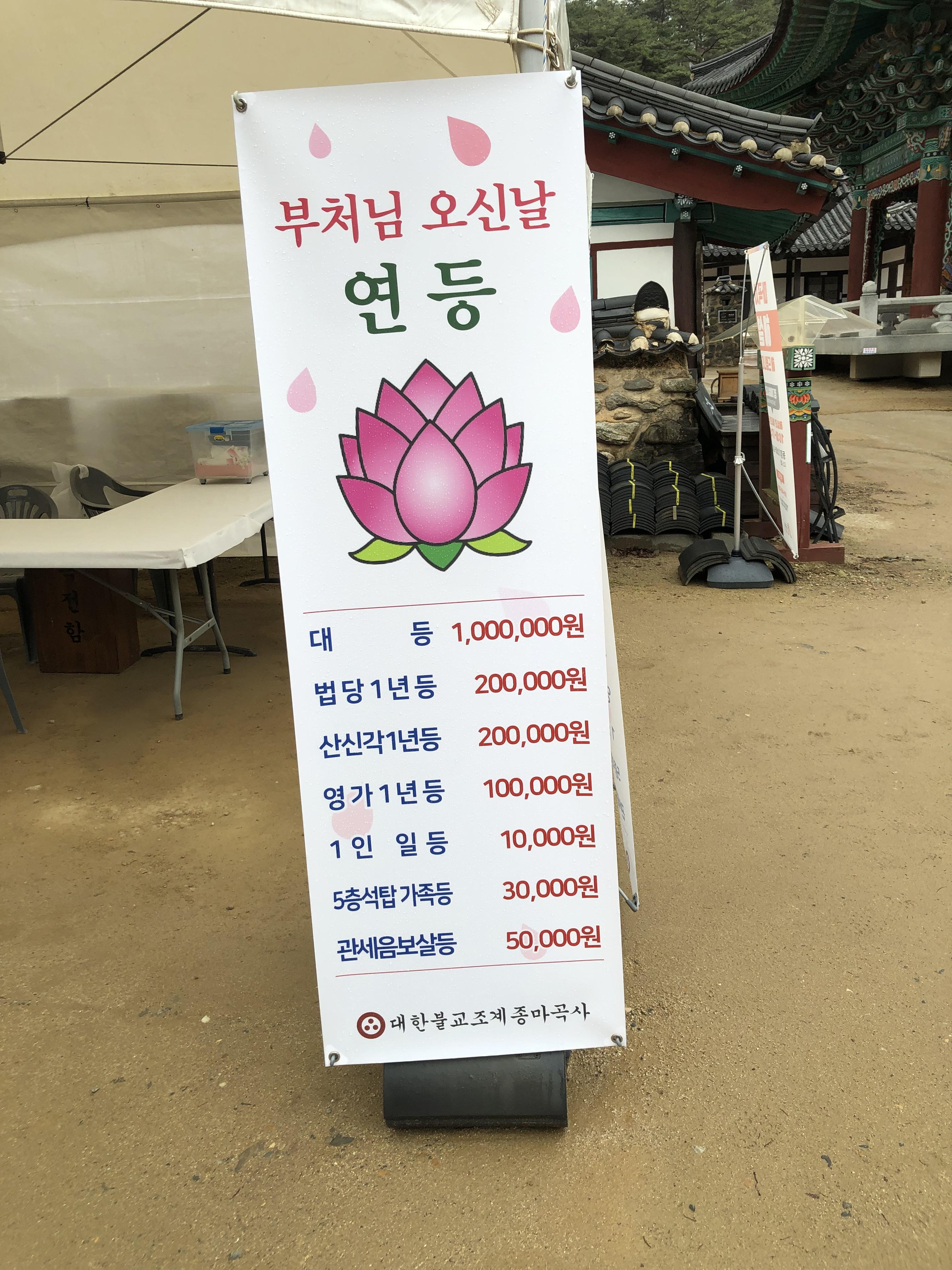마곡사 연등 가격이다.