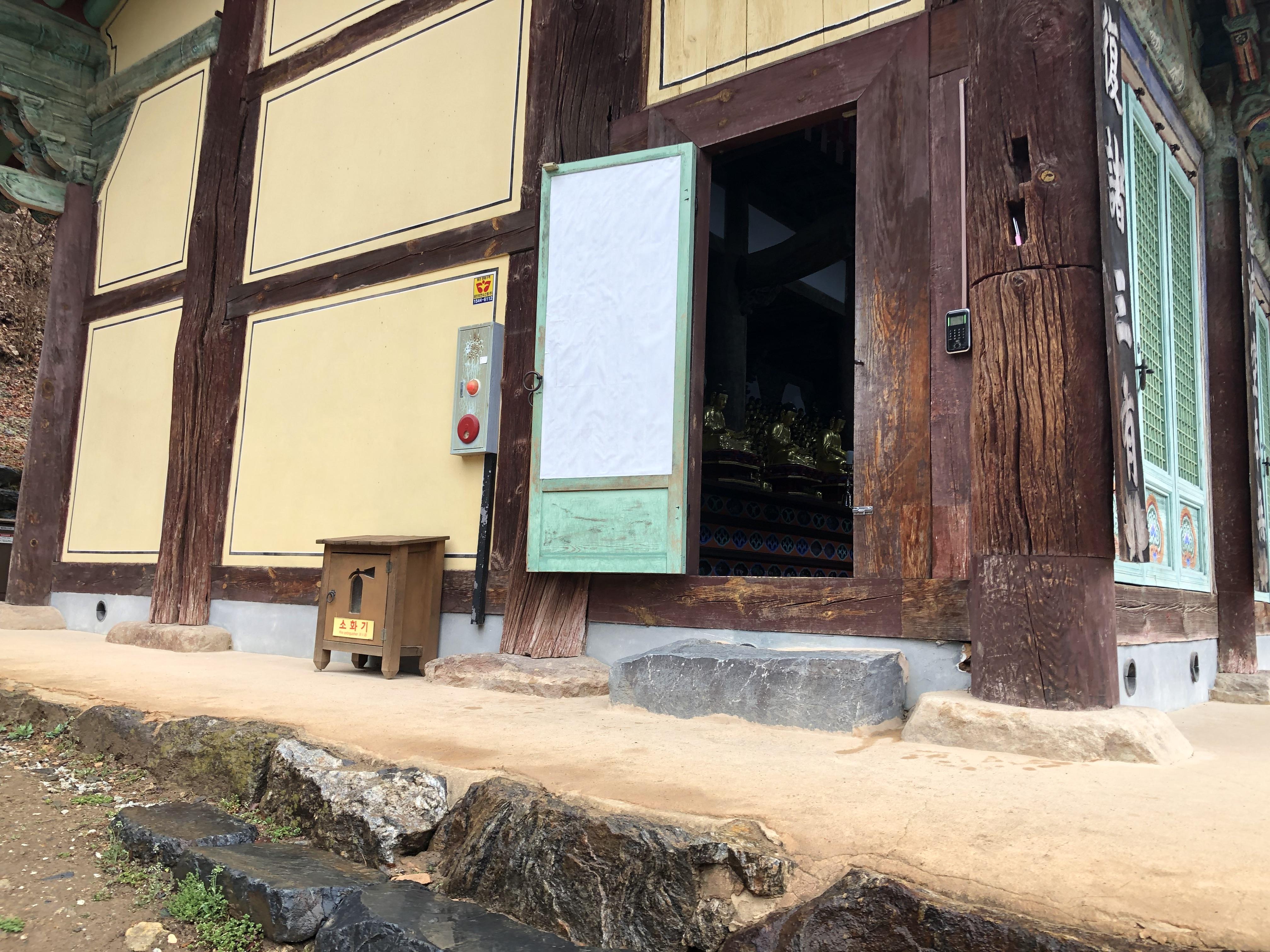 정면에 문이 열려서 부처님의 모습이 얼핏 보인다.