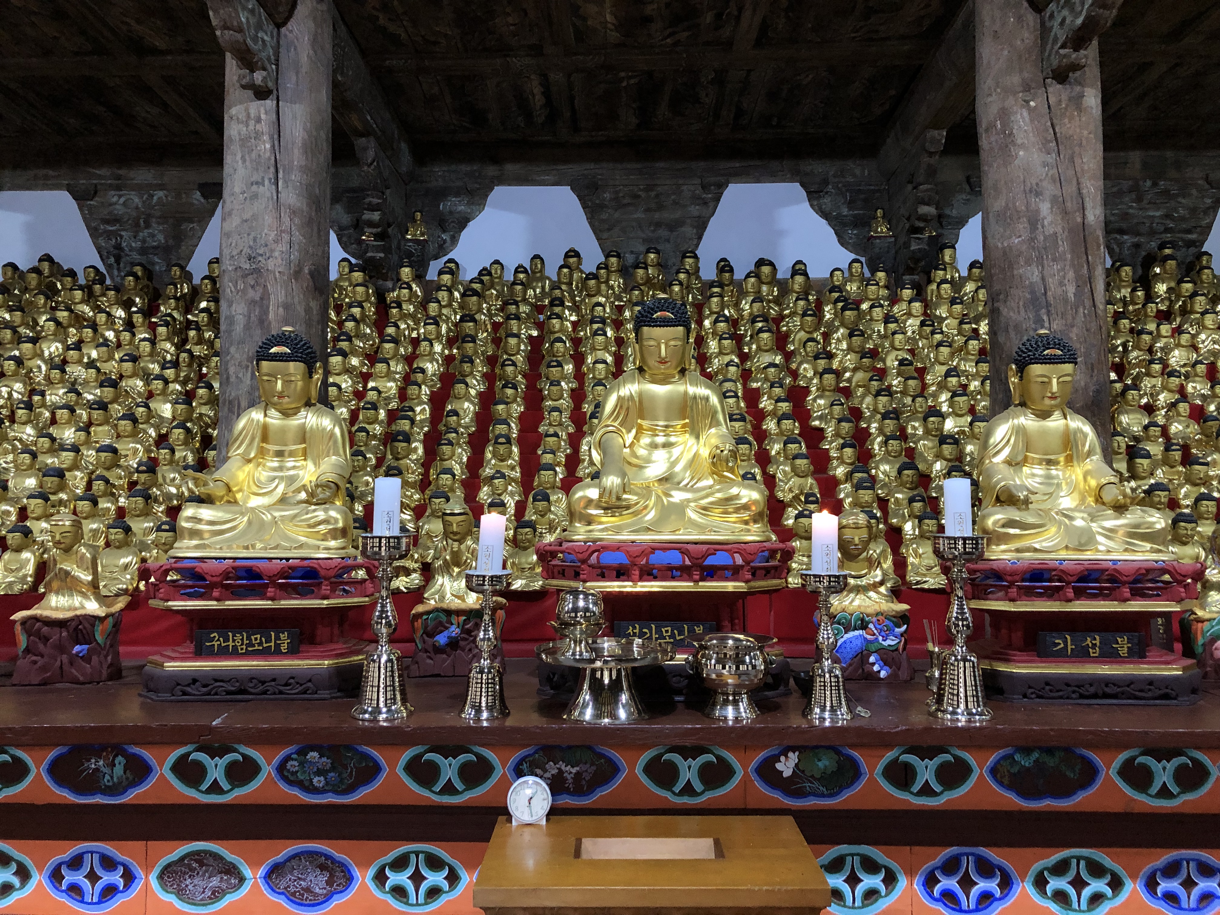 앞에 계신 부처님들과 뒤에 작은 부처님들이 무수히 많다.
