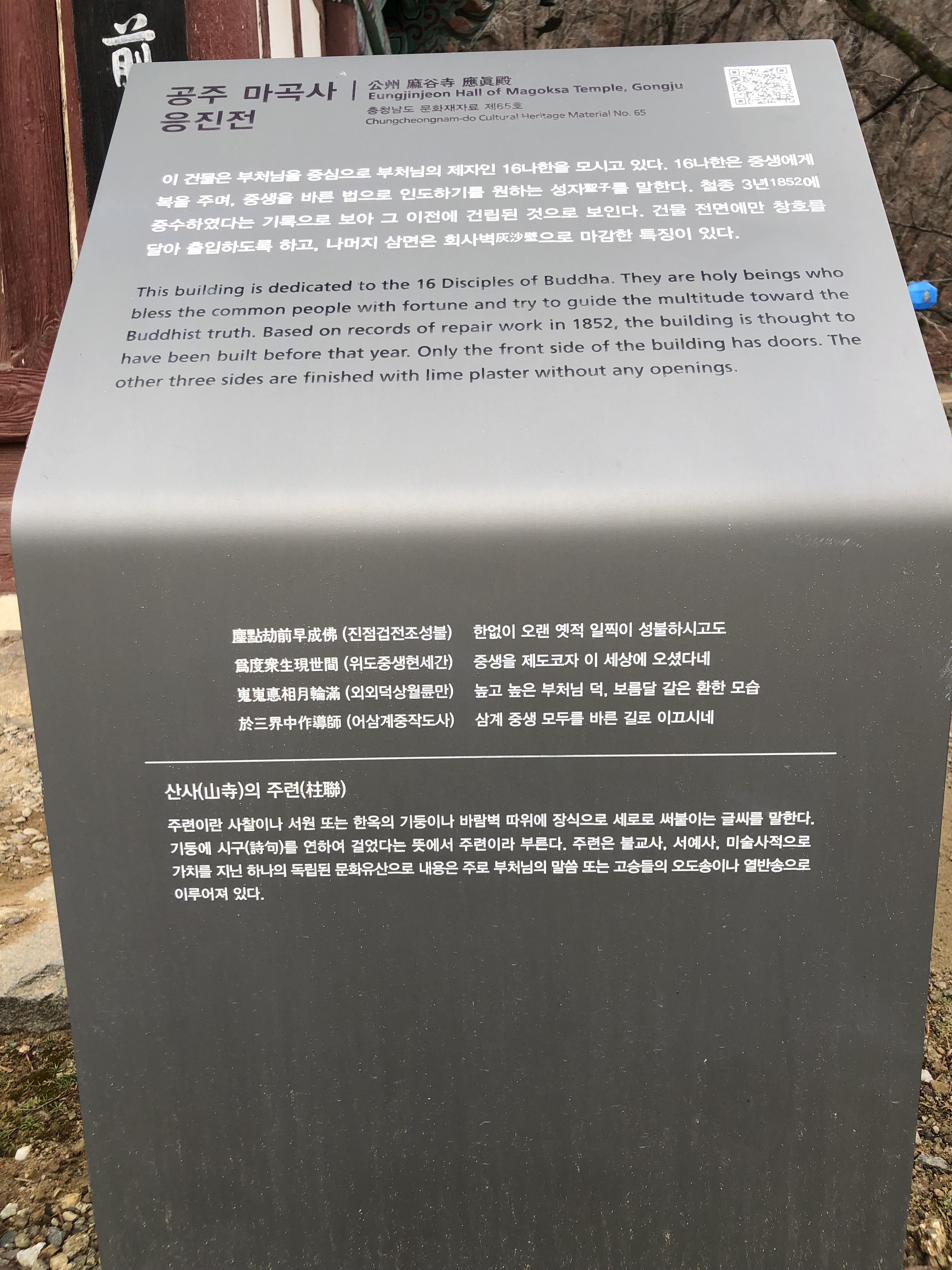 응진전 표지판 설명문