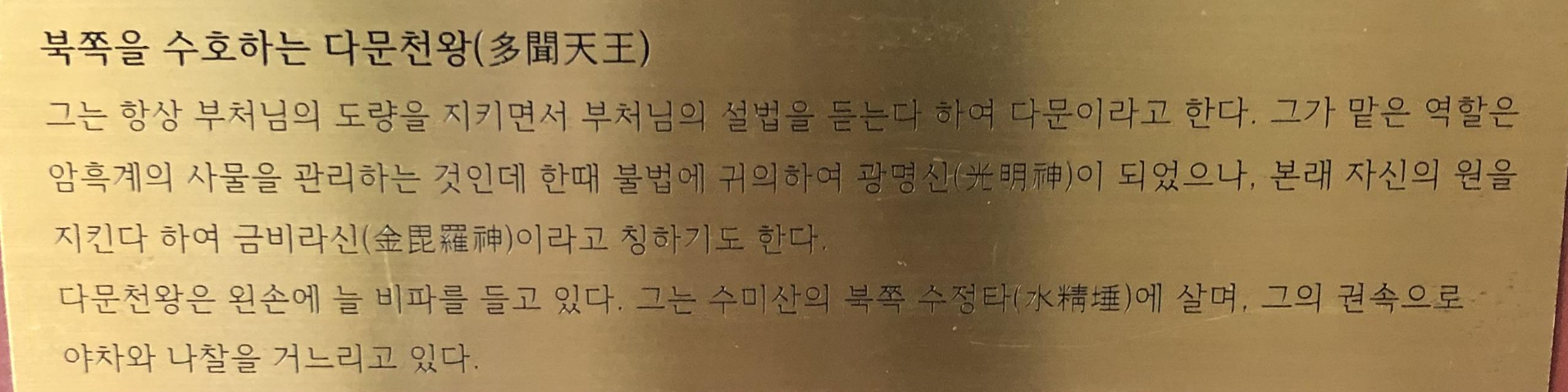 보탑을 들고 있는 천왕님은 다문천왕으로 알고 있으며 이곳의 설명을 보면 이해가 되지 않는 부분이 있다.