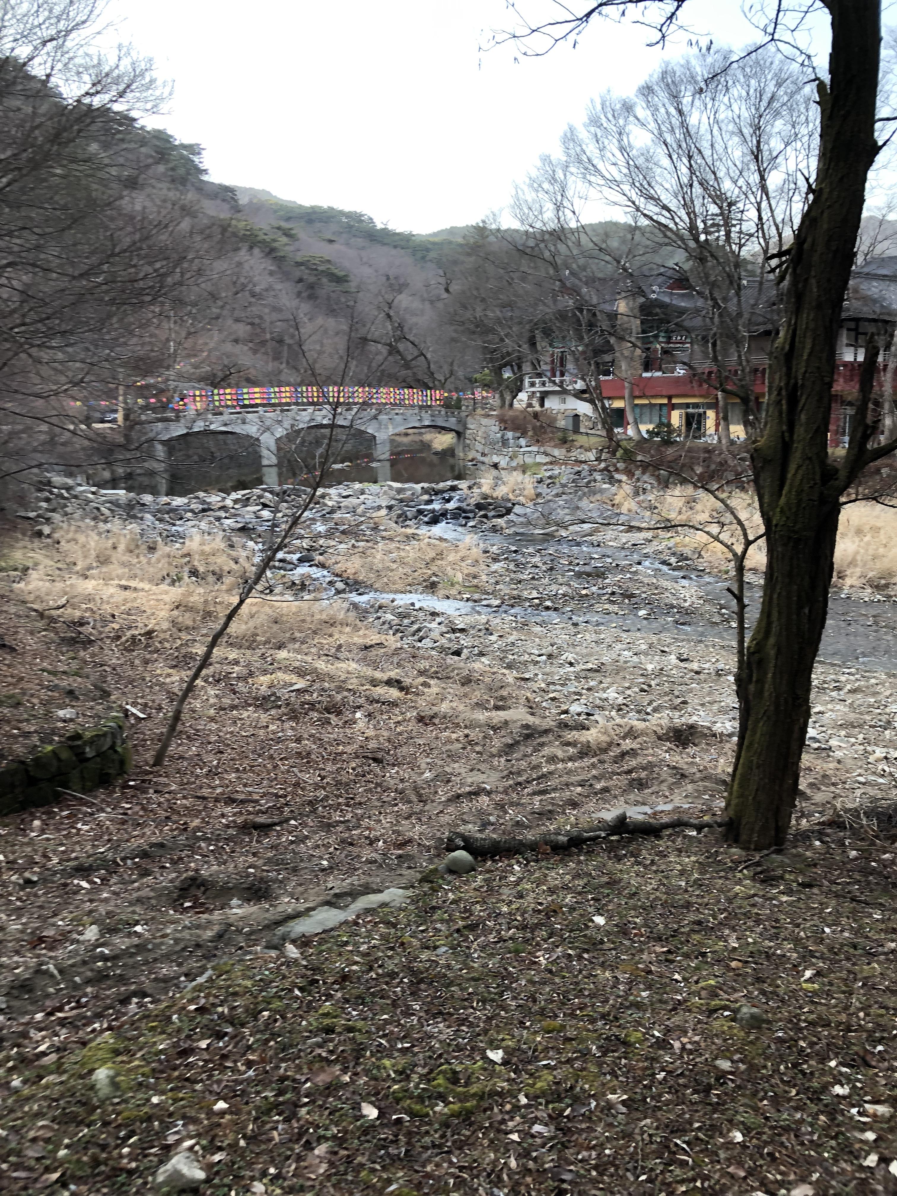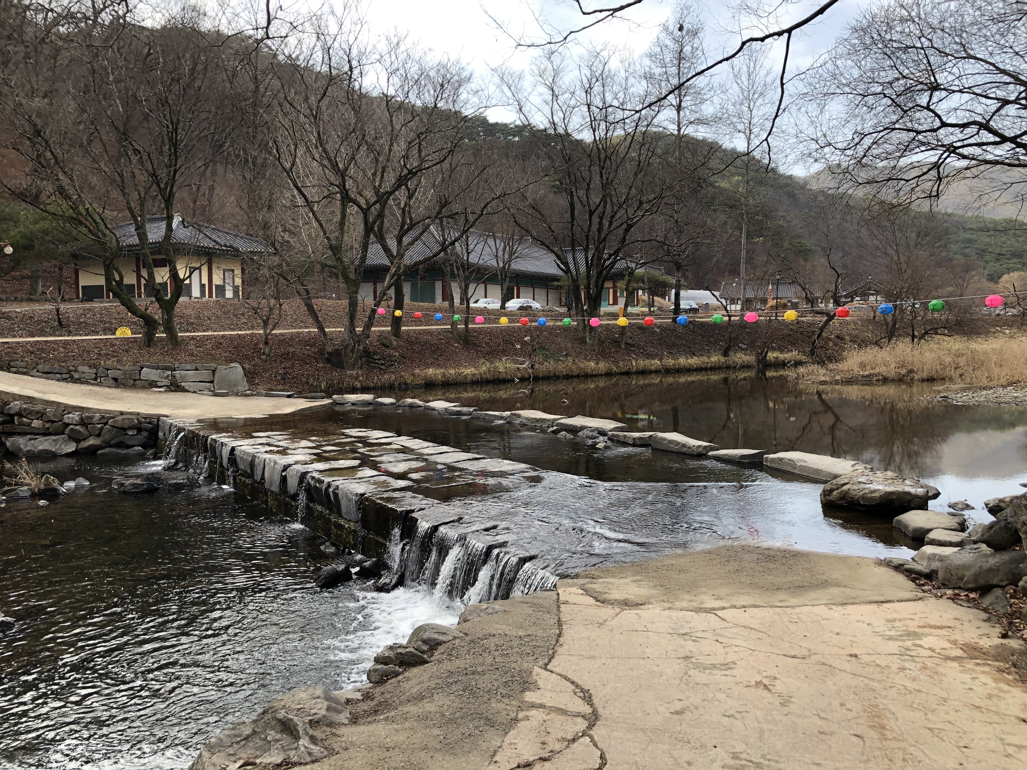 뒤돌아 나가면 시냇물이라 하기엔 규모가 크고 강이라 하기엔 규모가 작은 냇물이 있다.