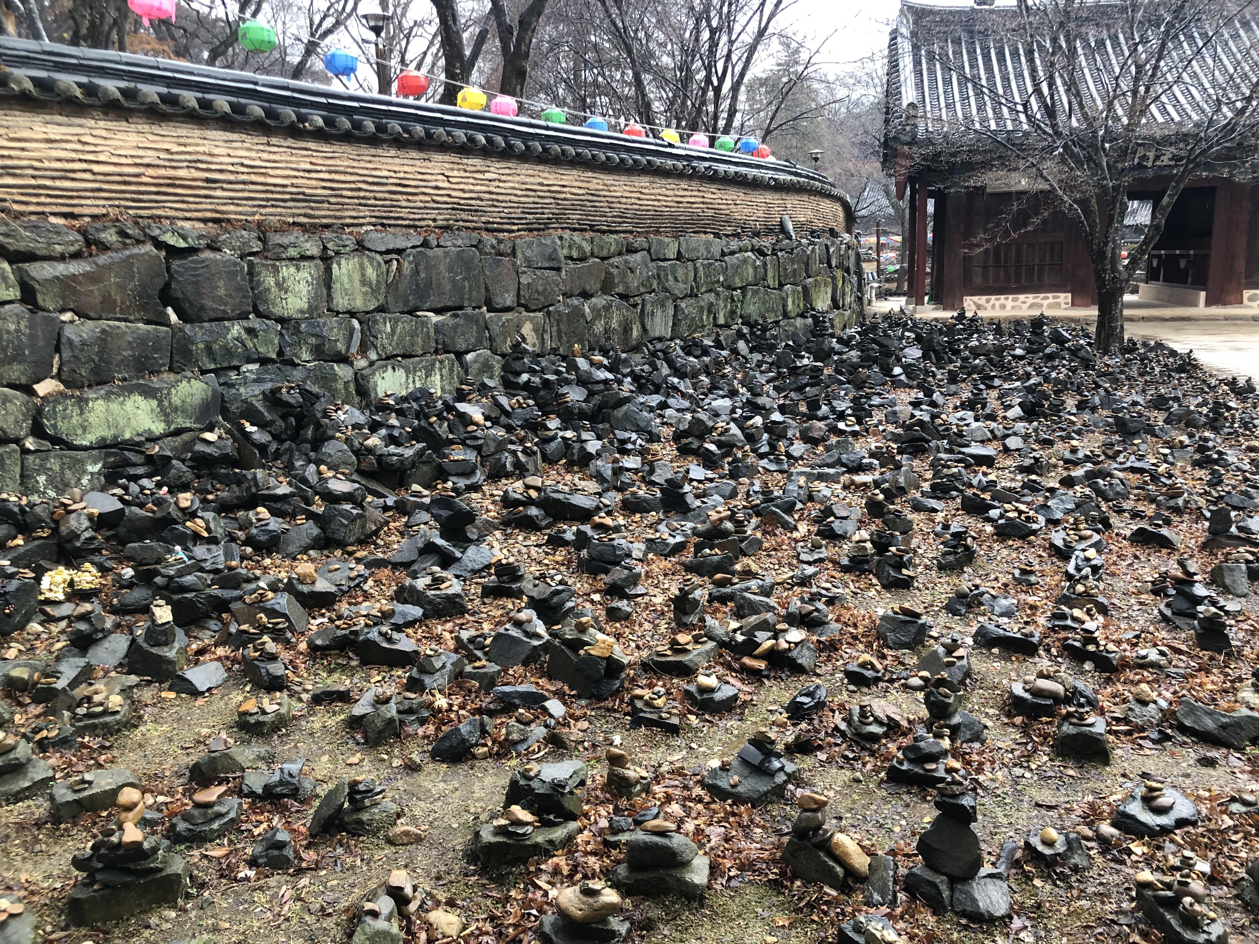 해탈문과 천왕문 사이에 수많은 돌탑이 만들어져 있다.