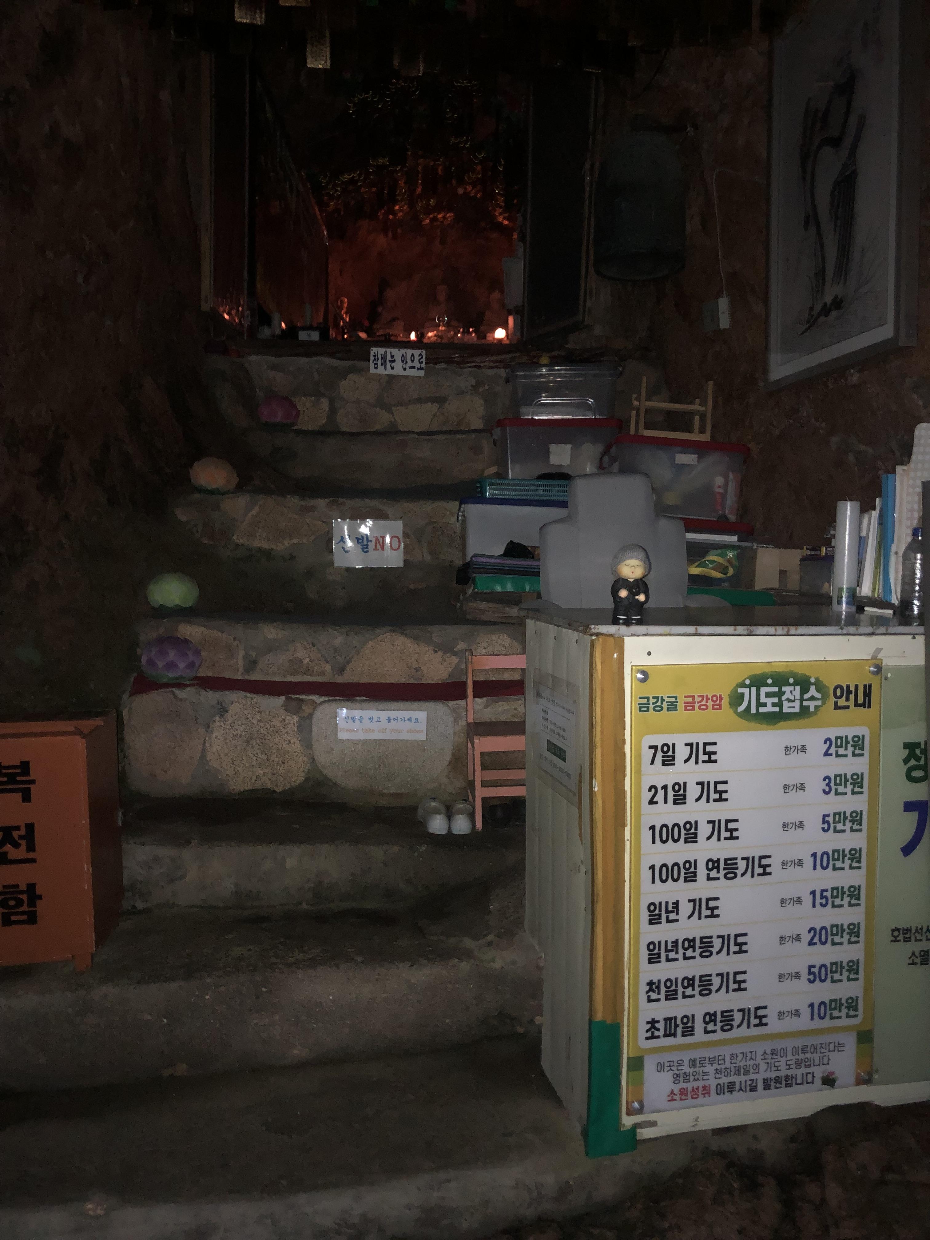 금강굴은 자연 동굴이며 1300여 년 전 원효대사가 수행하셨던 곳이라고 한다.