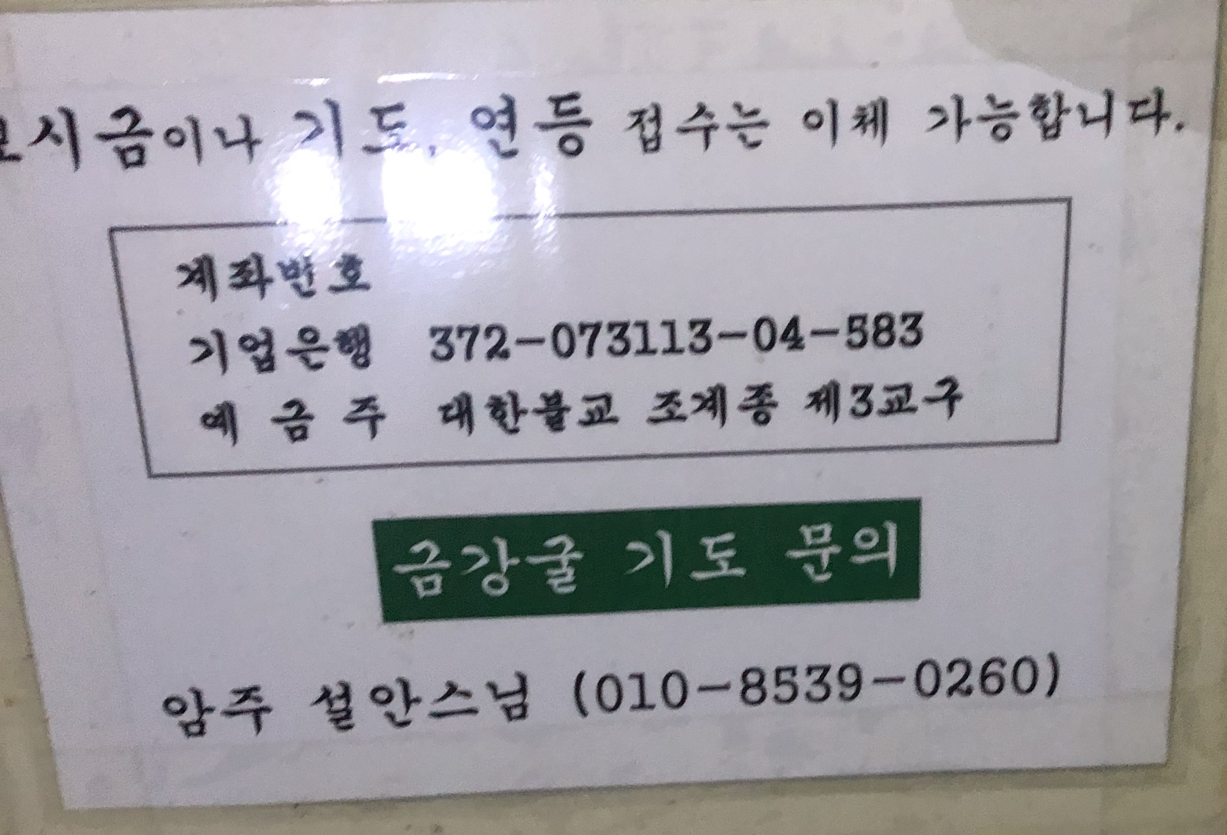 이곳의 계신분이 설안스님이시고, 기도를 원하시는 분은 연락하시면 된다.
