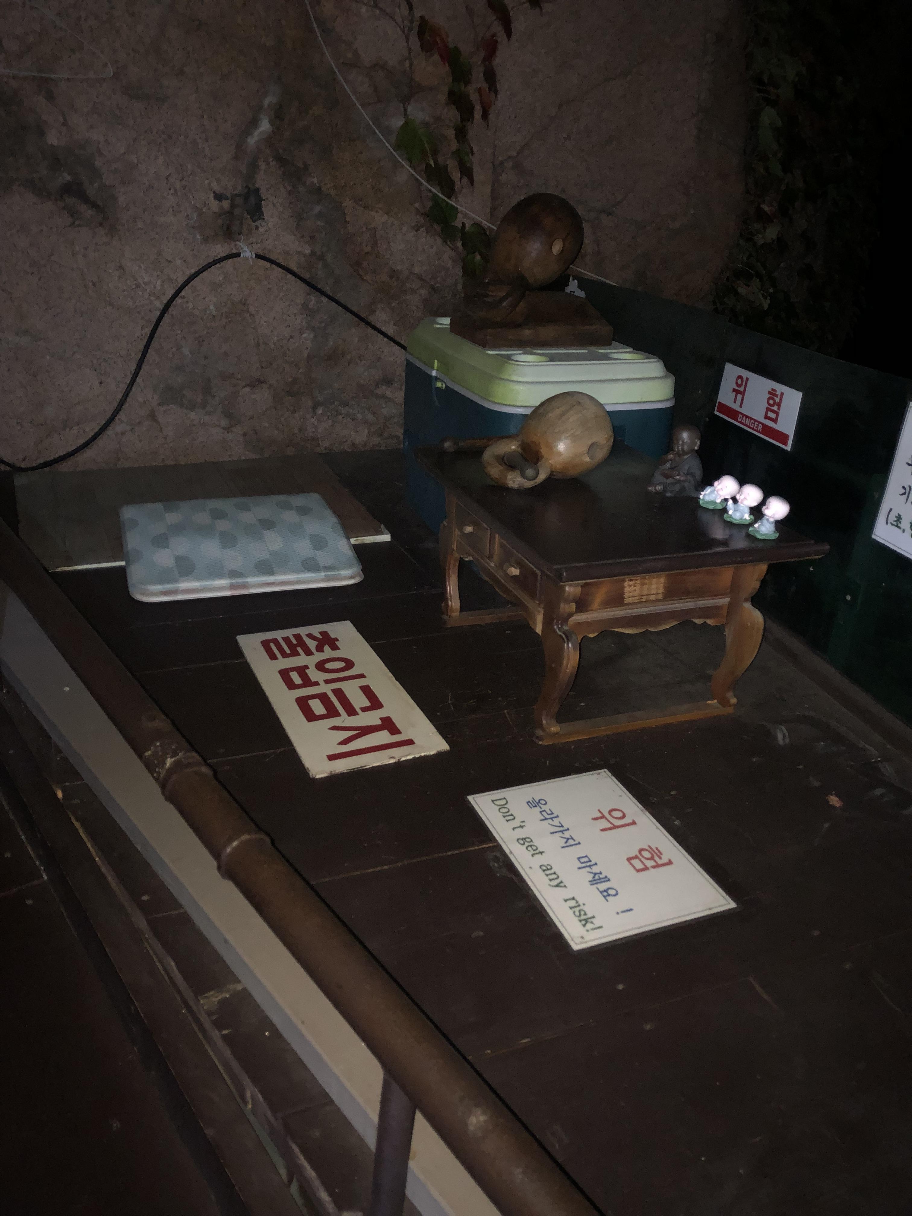 동굴 밖을 향해 있으며, 출입금지는 내구성이 약해서 쉽게 부서질 수 있기 때문인 듯하다.