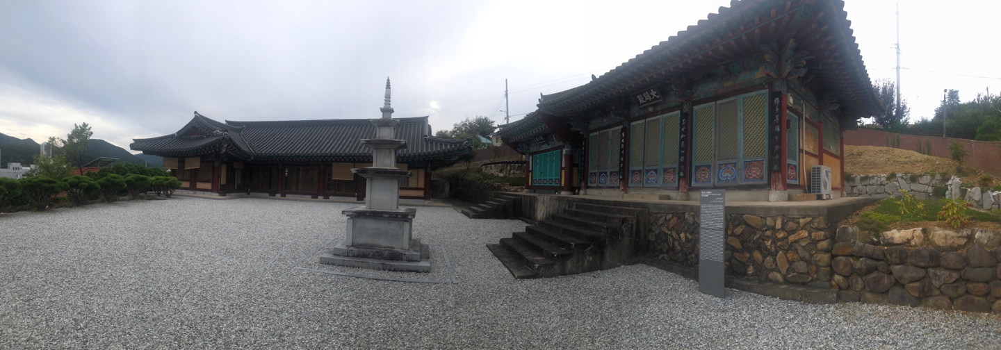 정면에 스님이 기거하는 건물과, 오른편에 세 개의 전각이 위치하고 있다.