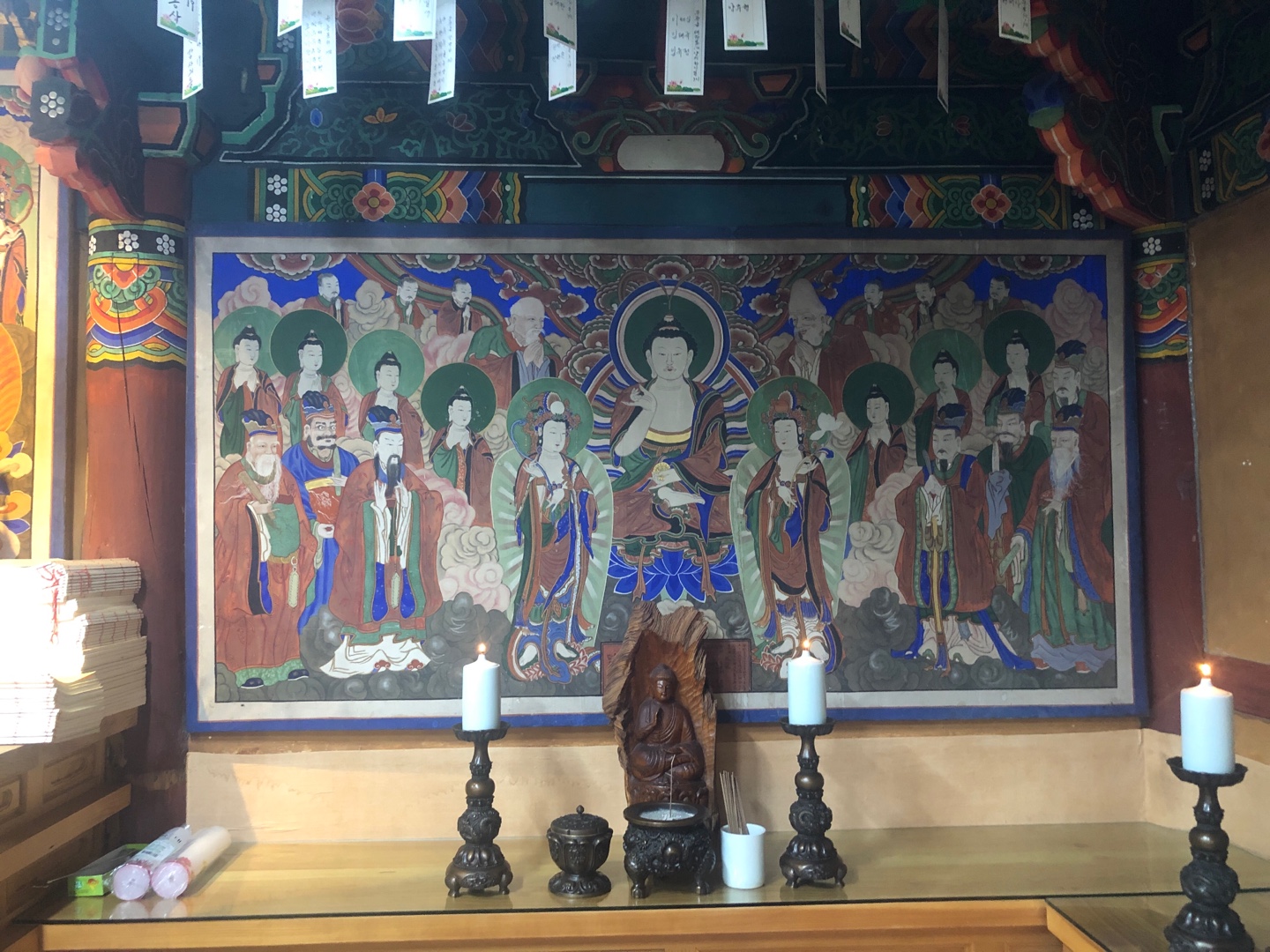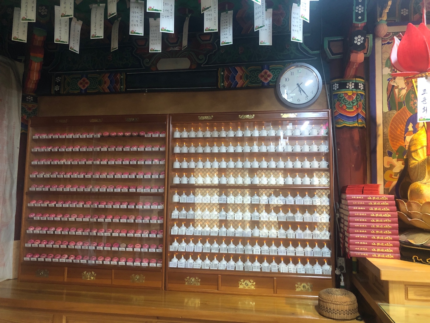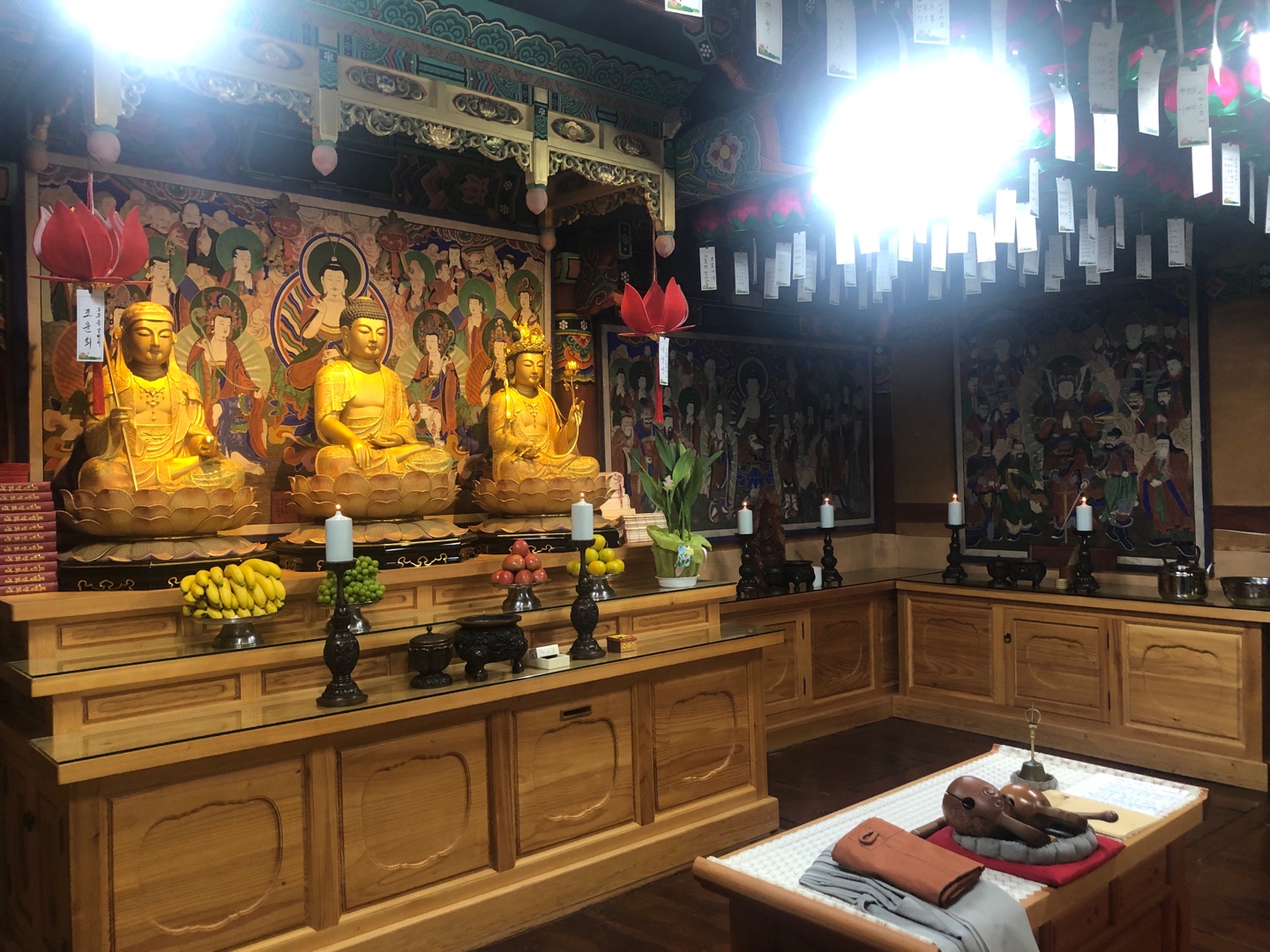 왼편으로 신도들의 소망을 담은 인등이 켜져 있다.