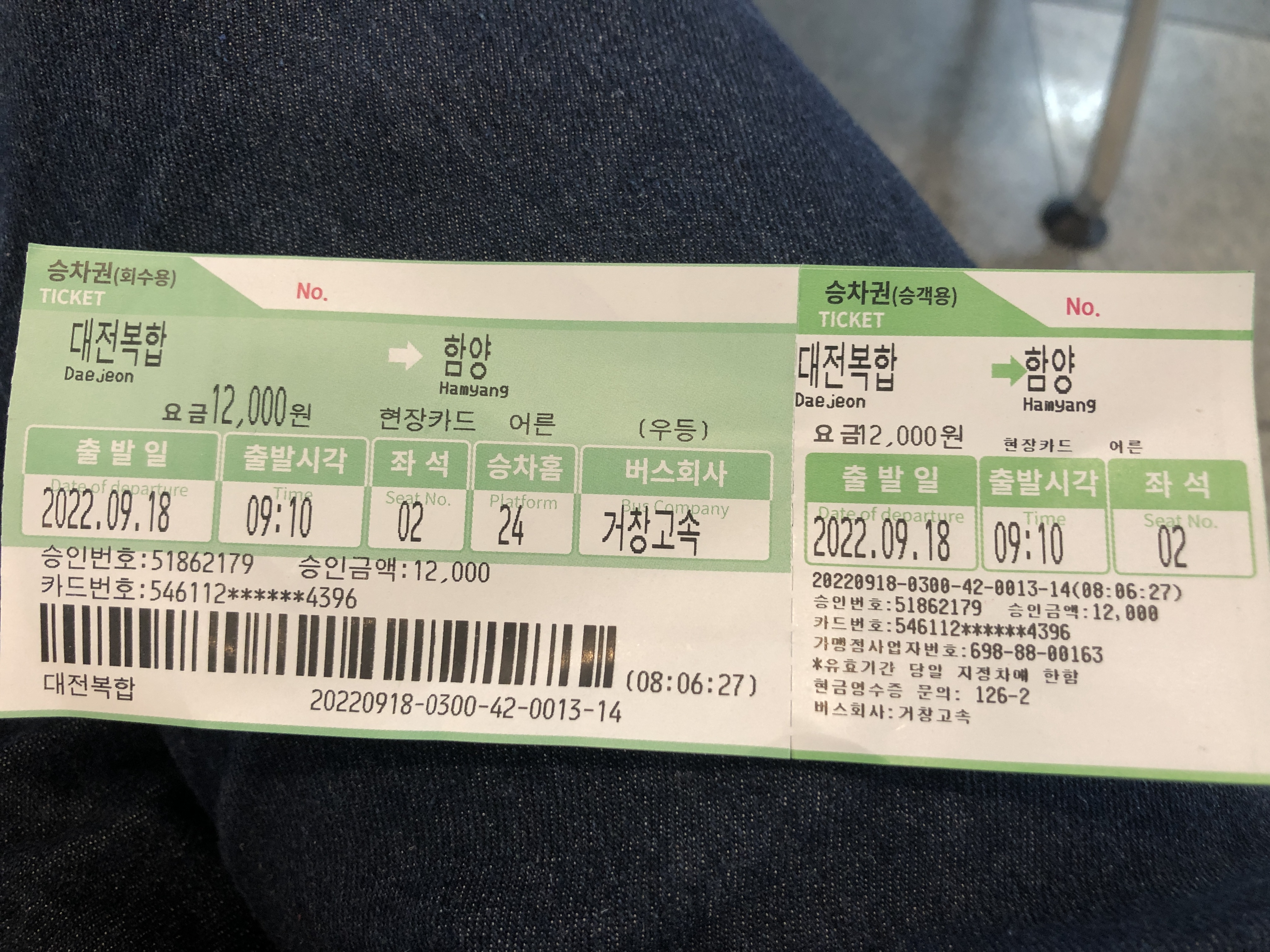 전 구간 공통이다. 너무나도 저렴하니 함양관광은 버스로 다니는 것도 괜찮을 것 같다.