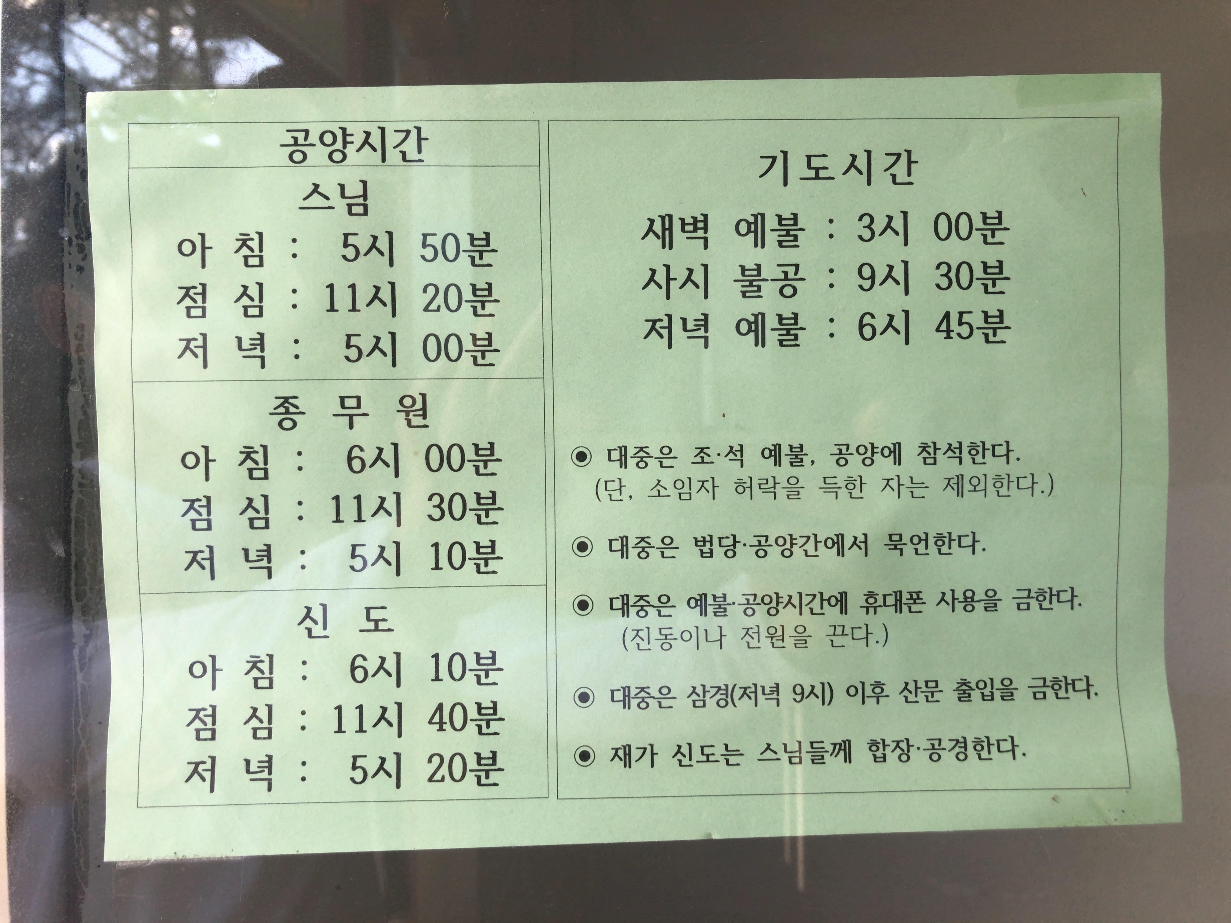 서암정사 공양시간표