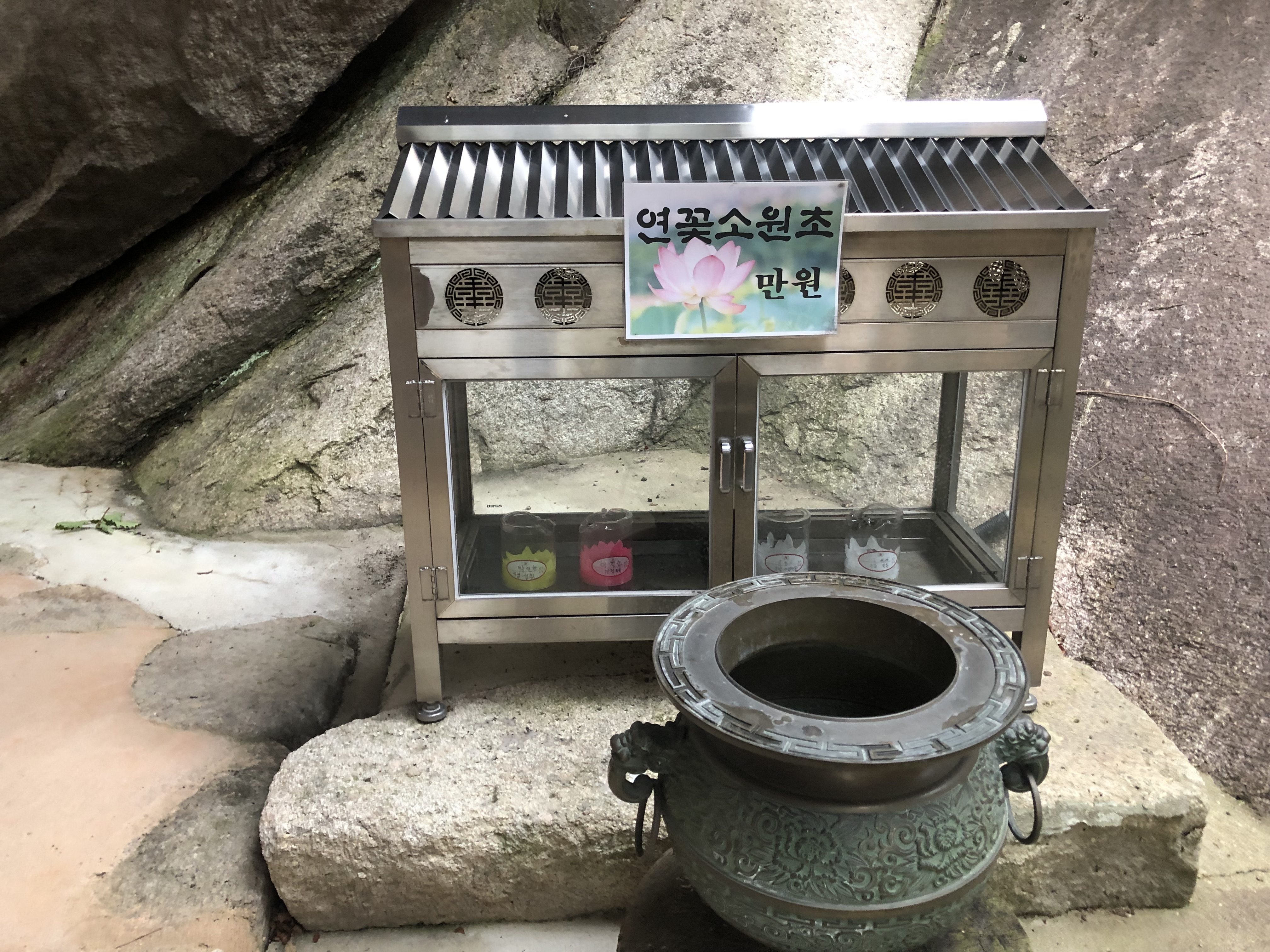 약수를 먹고 뒤쪽 계단 앞에 서면 초 켜는 곳이 있다.
