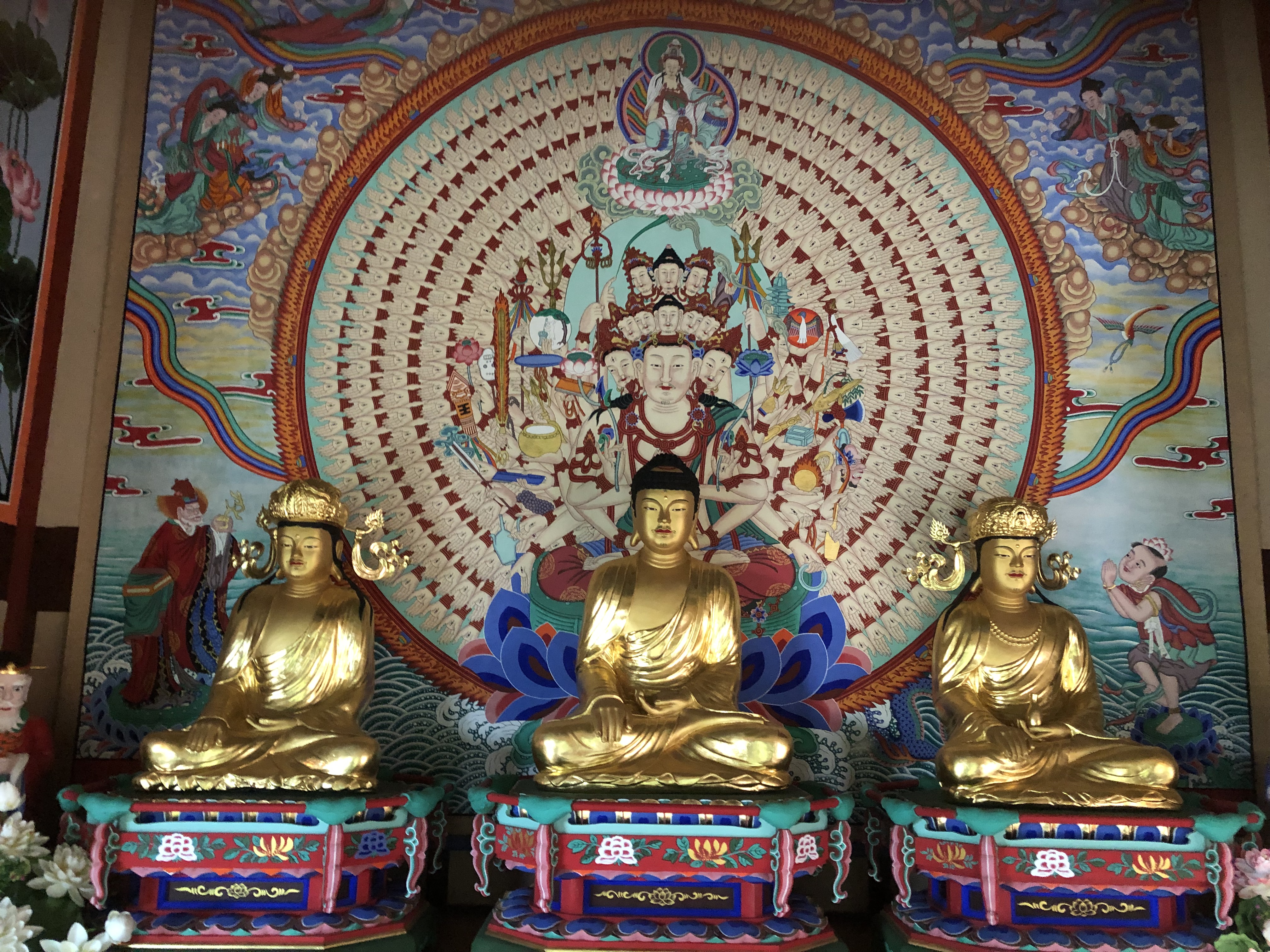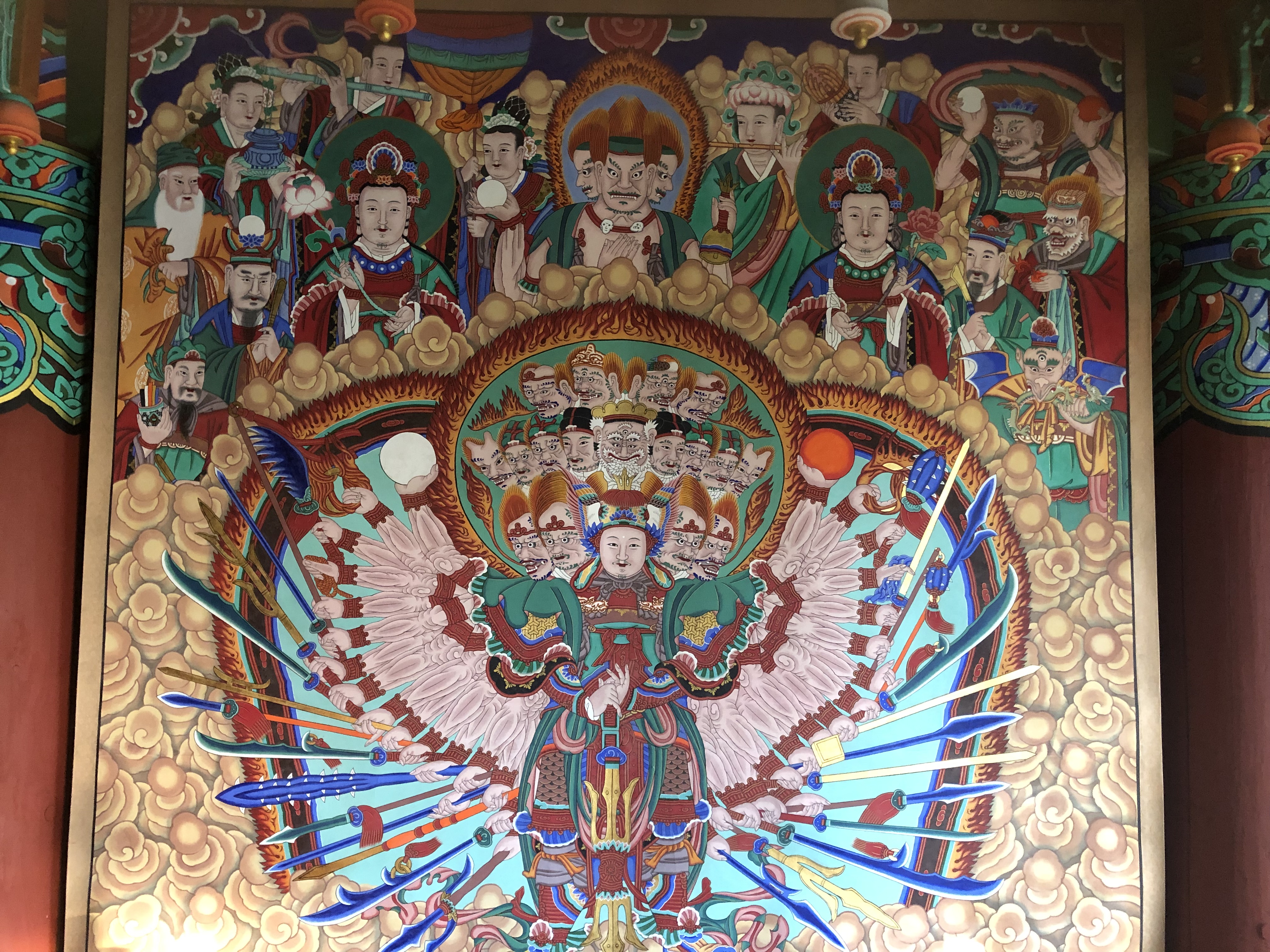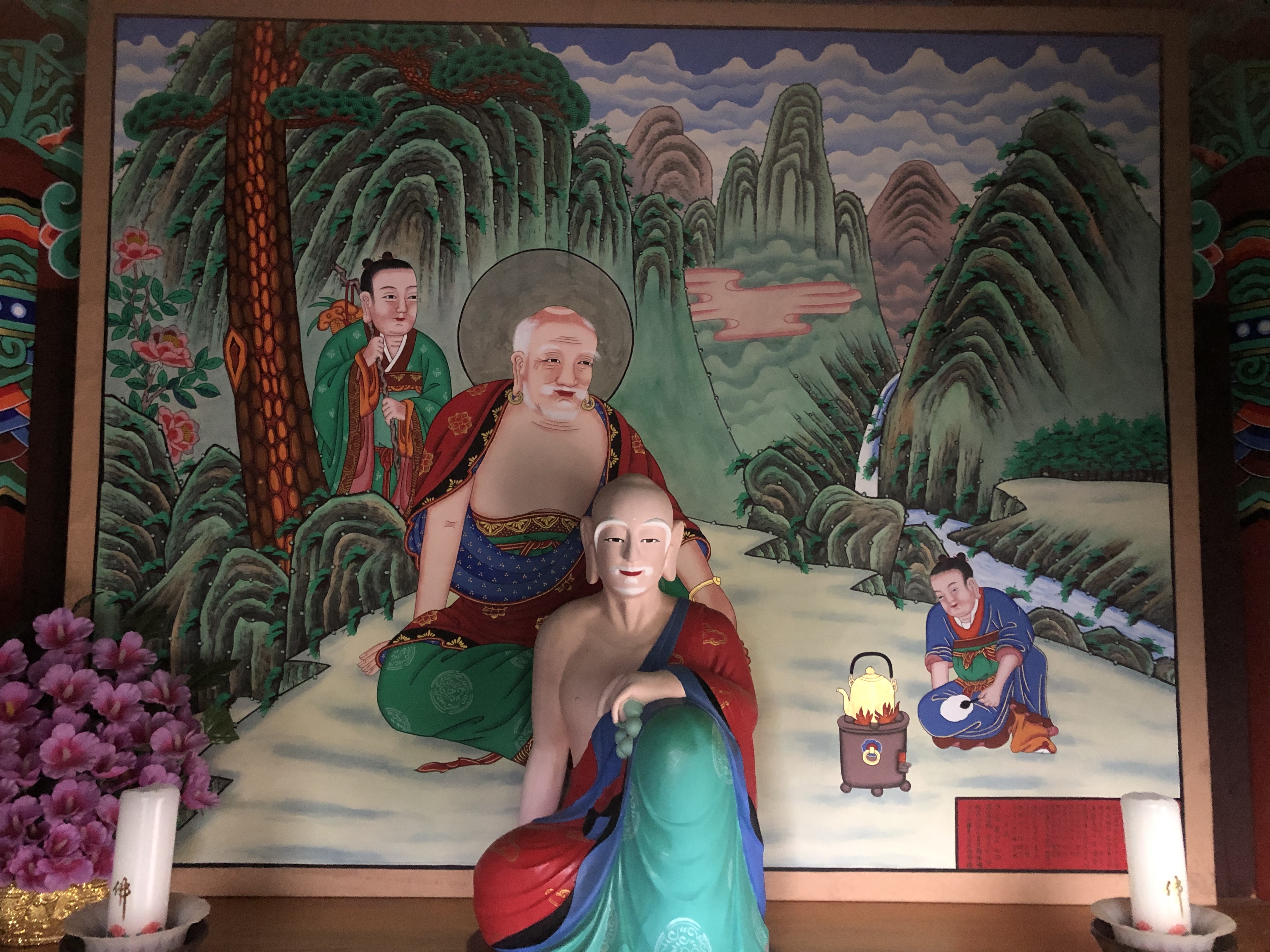 탱화와 앞의 조형물의 각도가 묘하게 어울려져서 기운이 뿜어 나오는 듯하다.