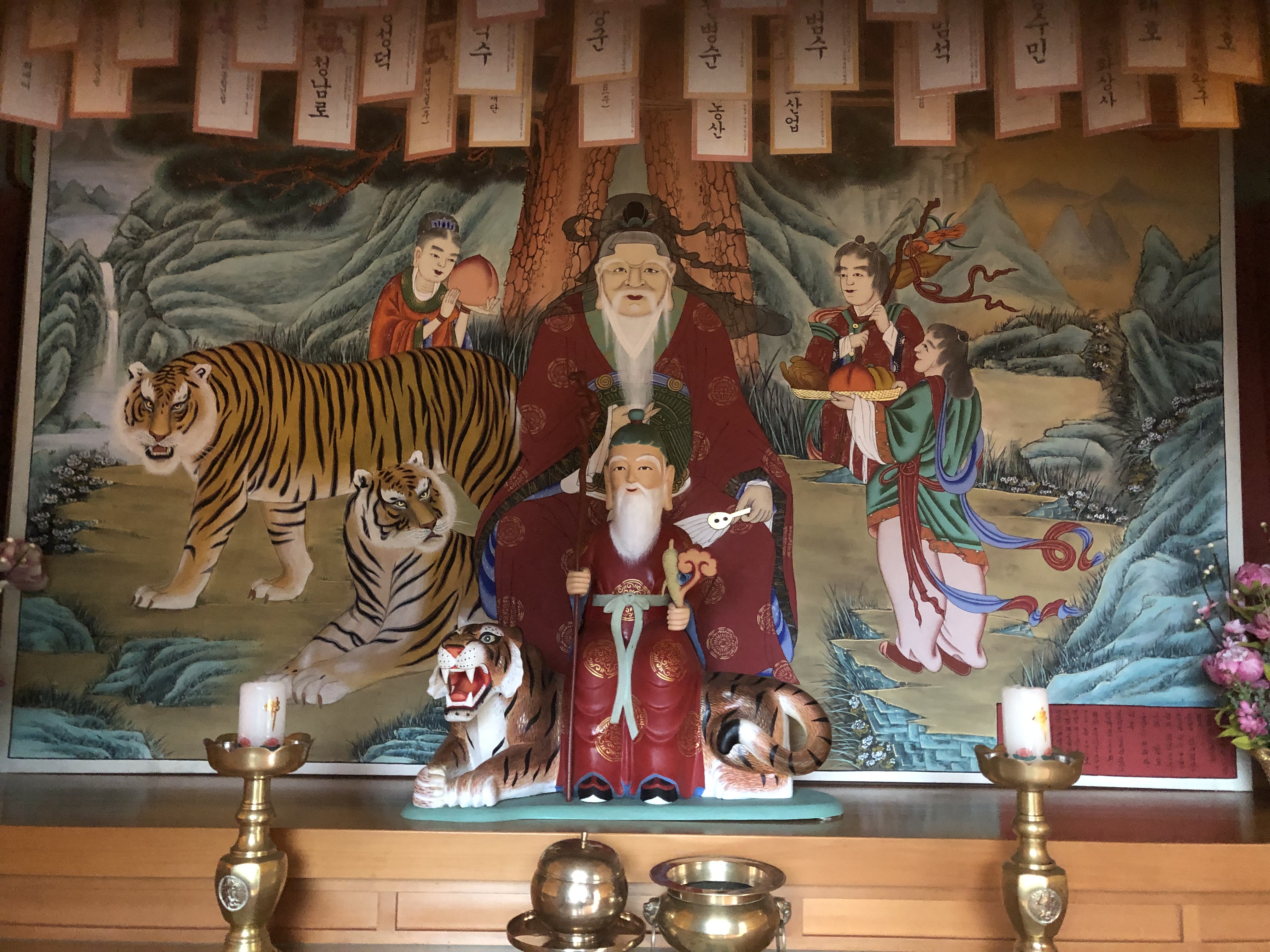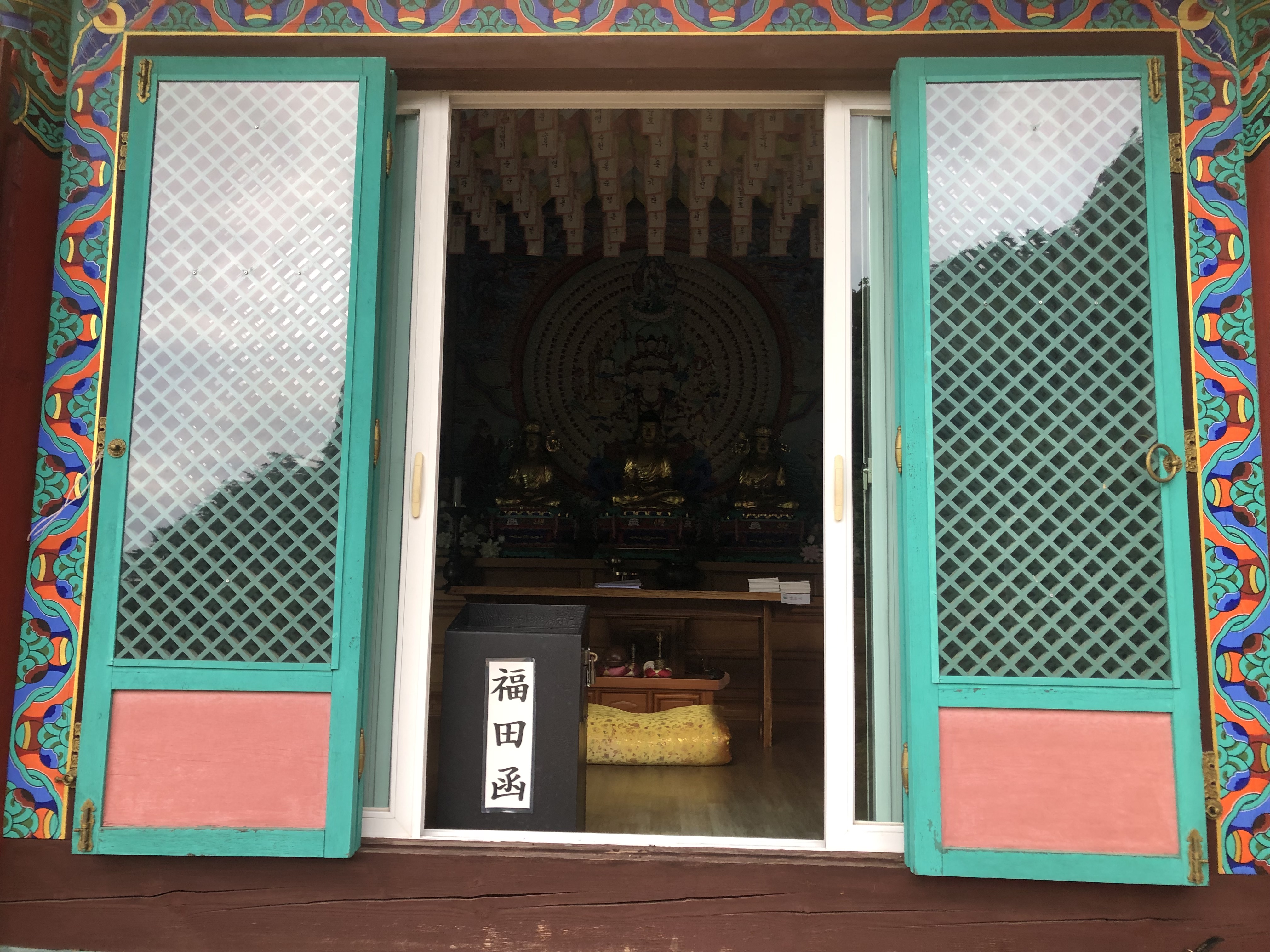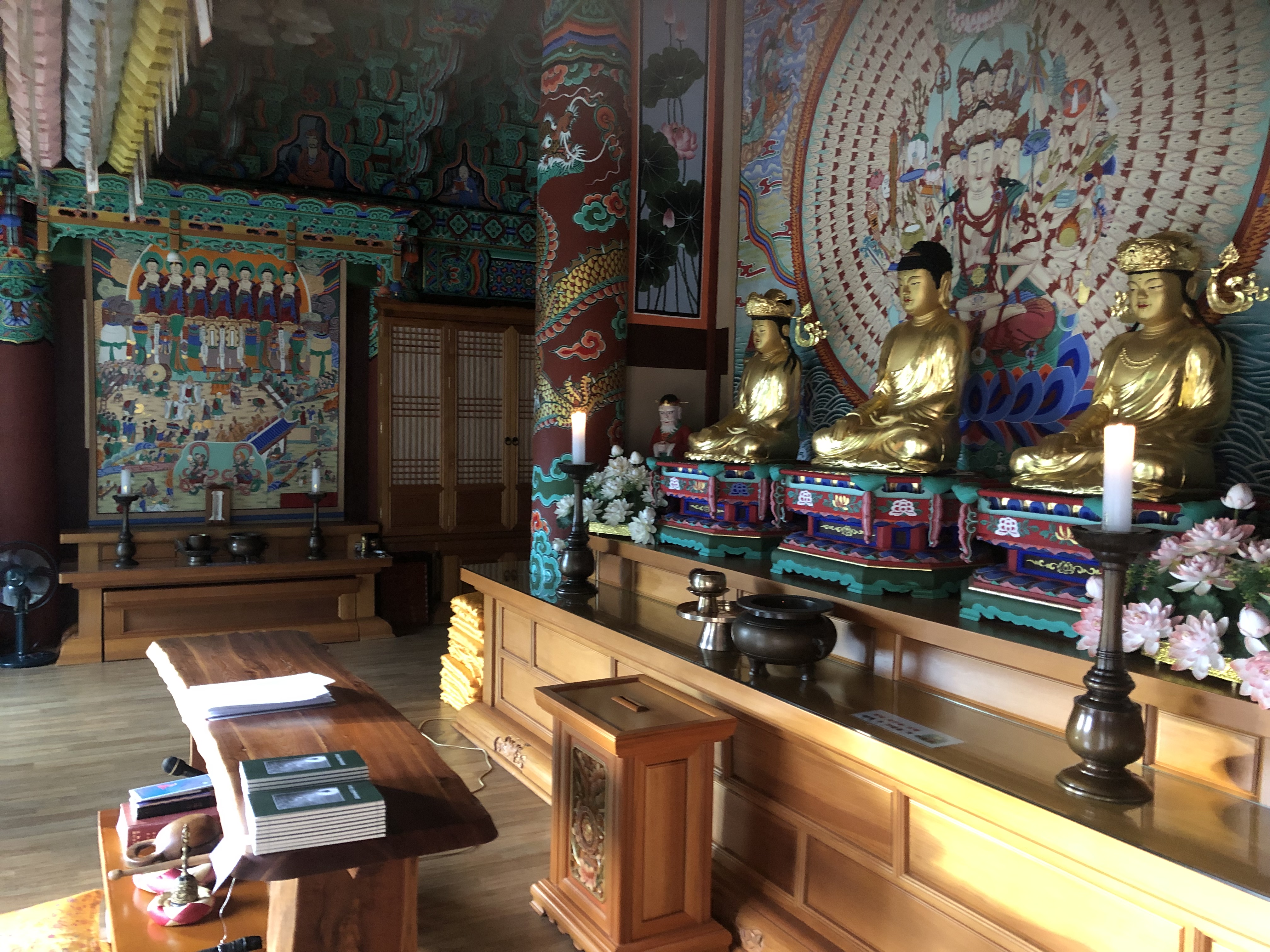 탱화와 앞의 조형물의 각도가 묘하게 어울려져서 기운이 뿜어 나오는 듯하다.