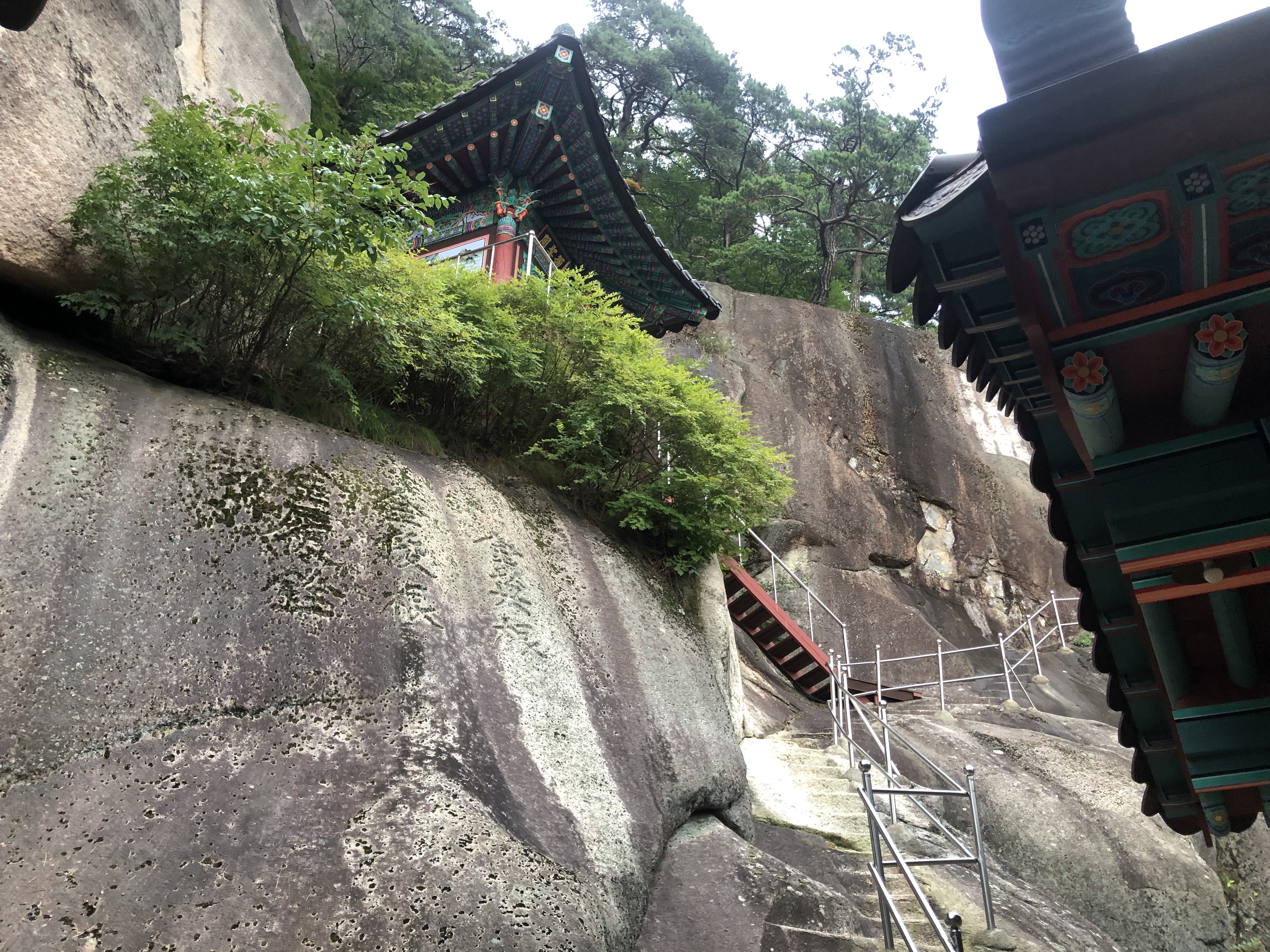 산신각 현판을 보는 것조차 매우 어렵게 느낄 만큼 난간은 좁고 위험하다.