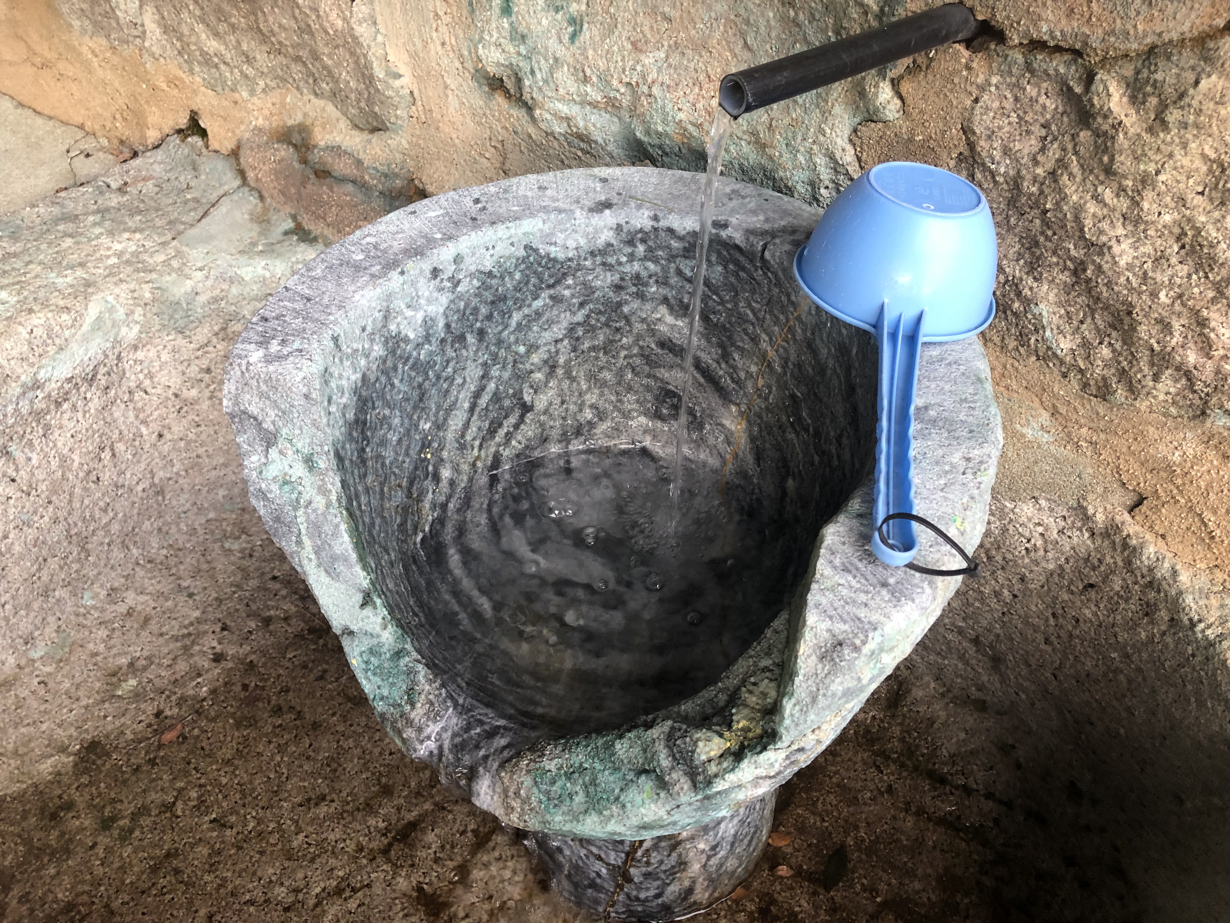 약수가 고인 곳은 돌로 만든 절구처럼 보이지만, 실제로 절구를 이용한 것인지 약수를 위해 제작한 것인지는 모른다.
