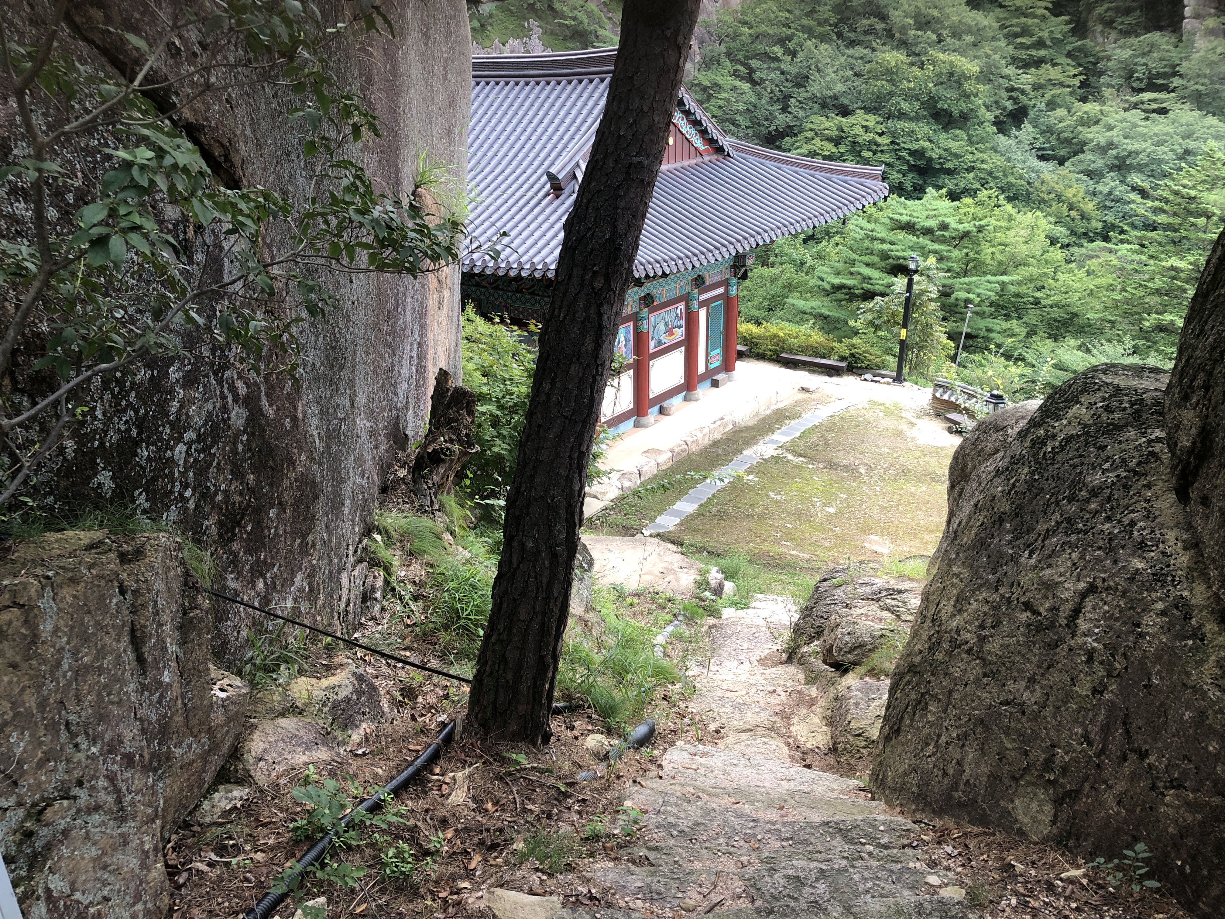 저 아래 뭔가 있는데 사찰인가?