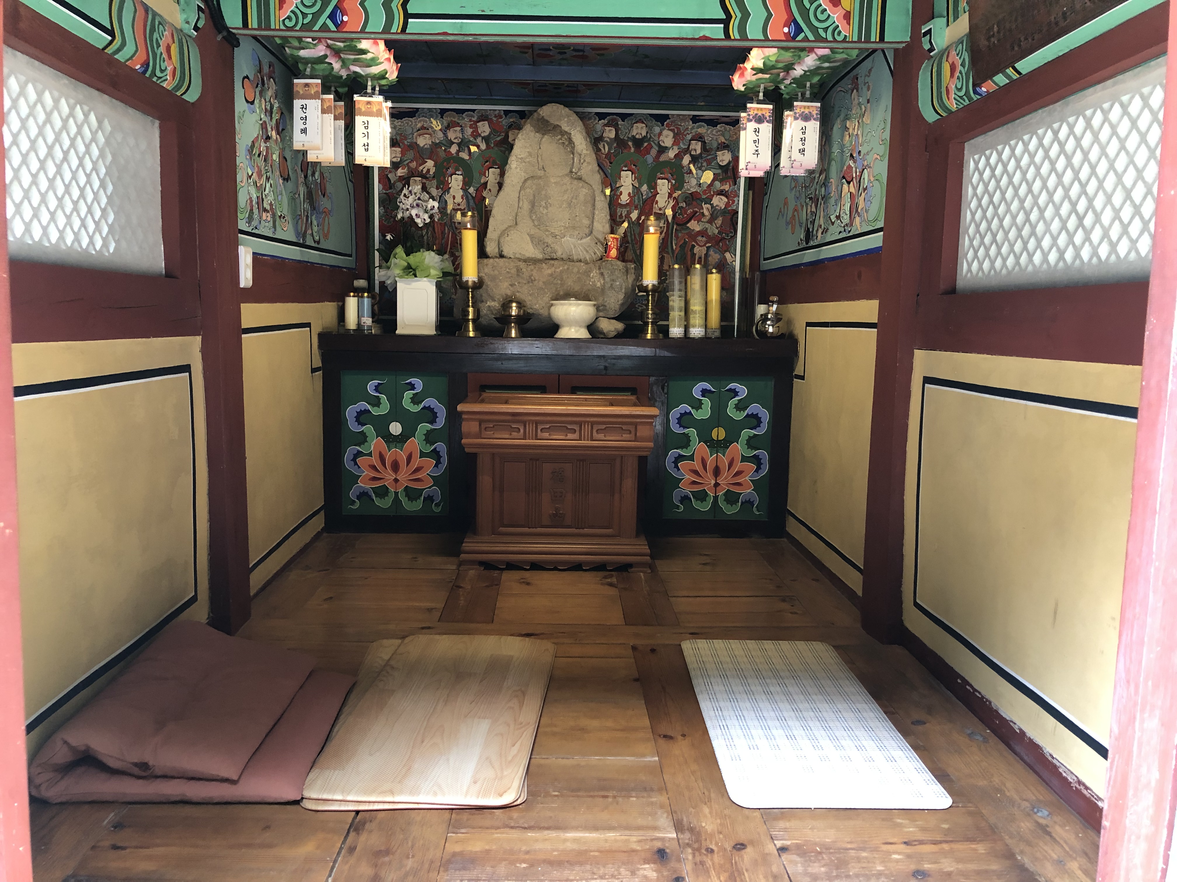 연지암연지암이다.현판이 다른 전각들과 비교해서 간소해 보인다.문 앞에 마루가 있는 모습과 기단 위 디딤돌에 신발이 놓여 있는 모습을 보아 안에 사람이 있는 모양이다.한쪽 벽에 우산이 놓