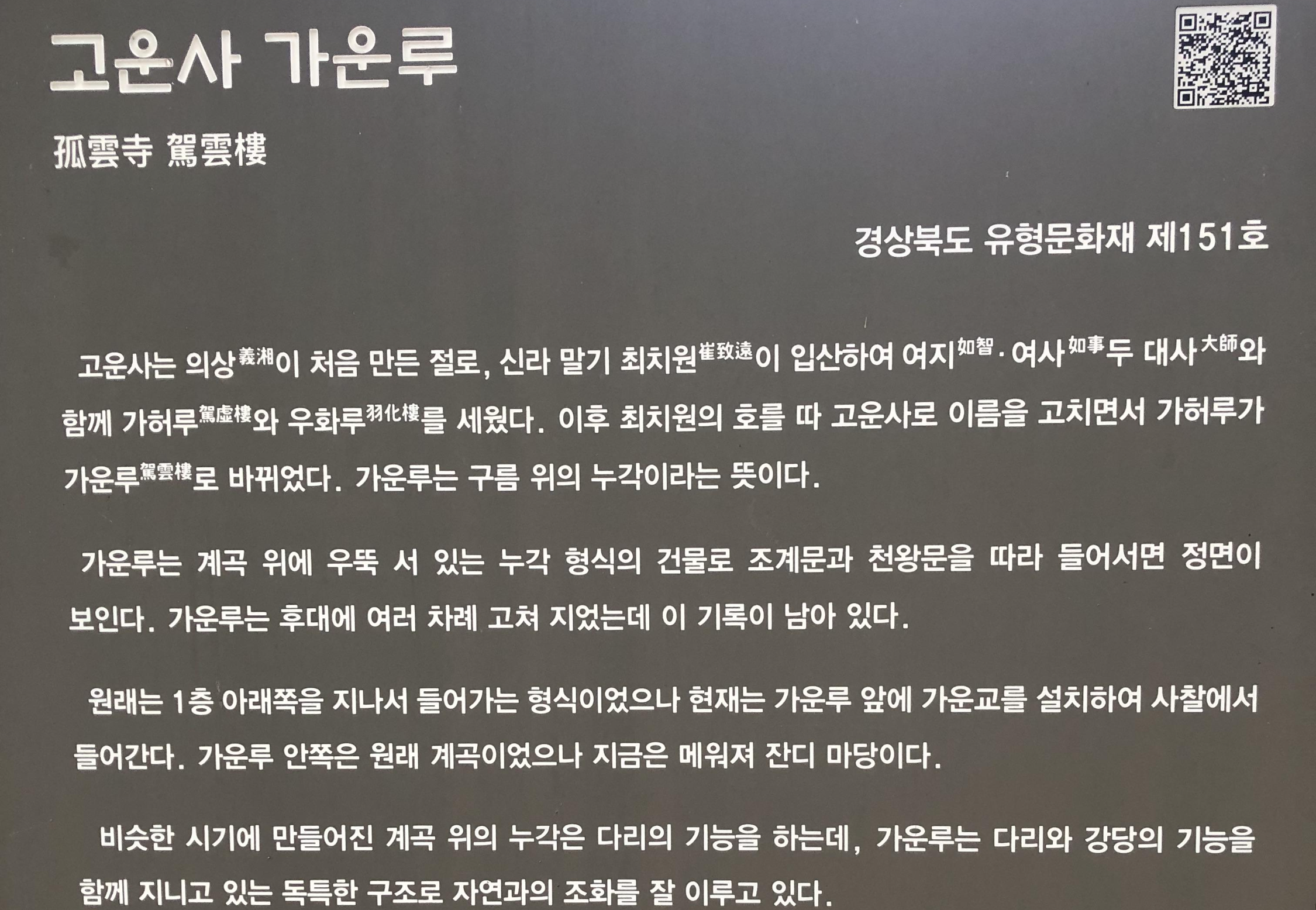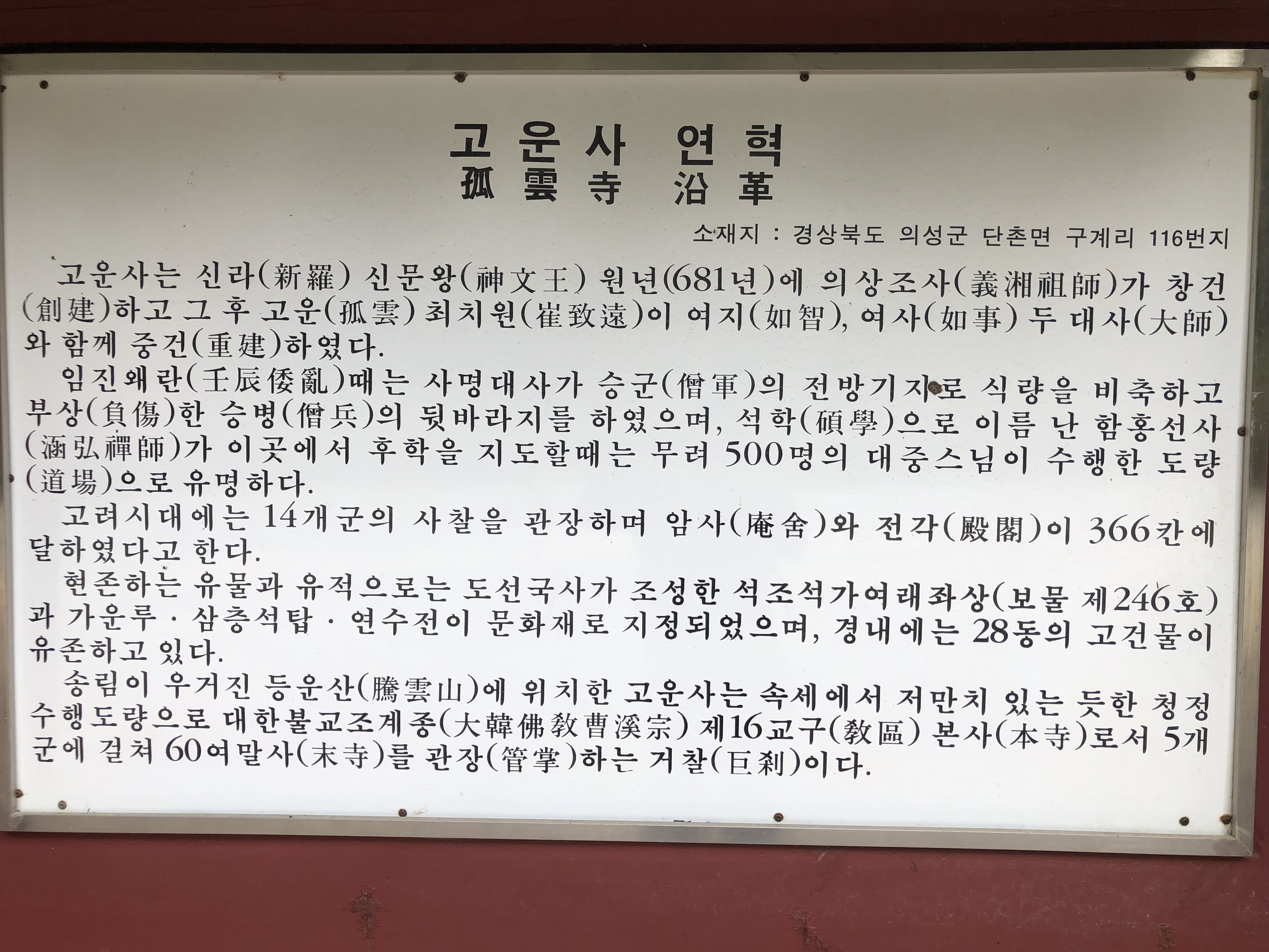 고운사는 신라의 신문왕 때에 지어진 사찰로 의상대사께서 창건하신 사찰이다.