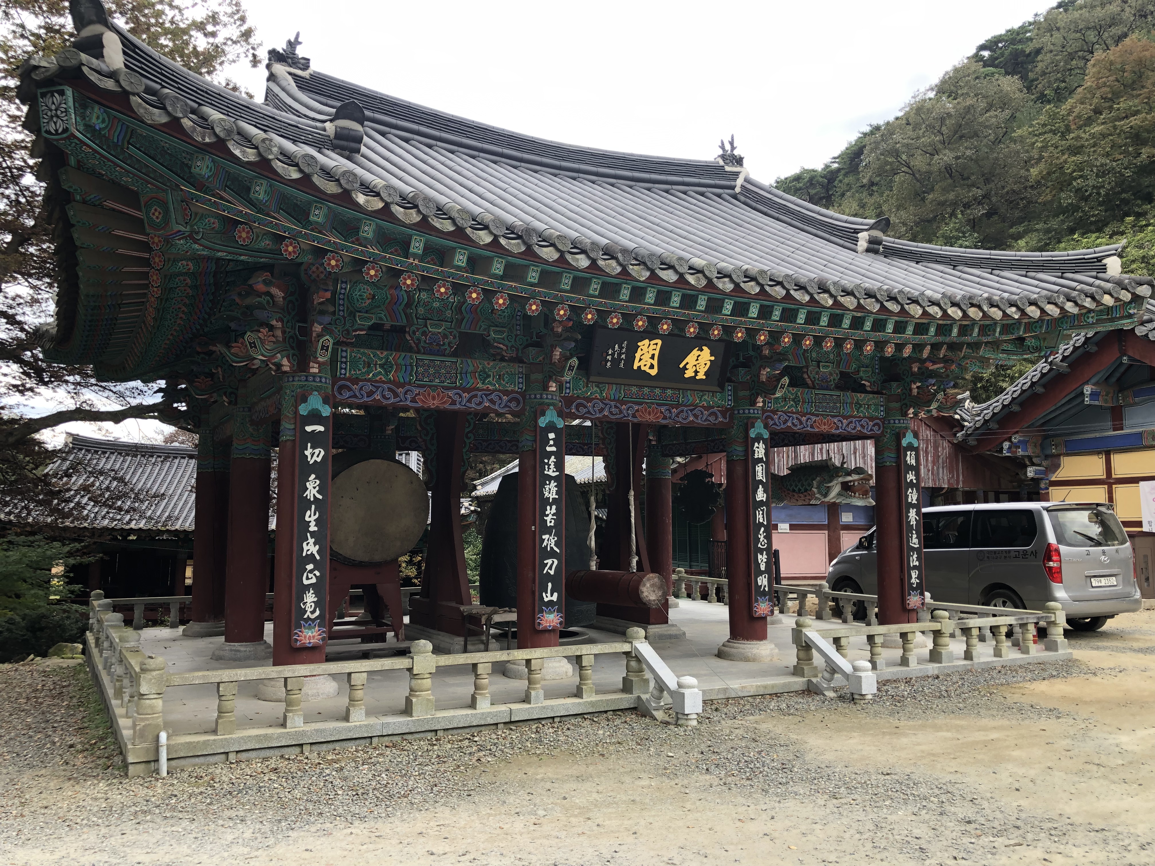 범종각에 법고와 범종과 목어 그리고 운판이 있는 것이 보인다.