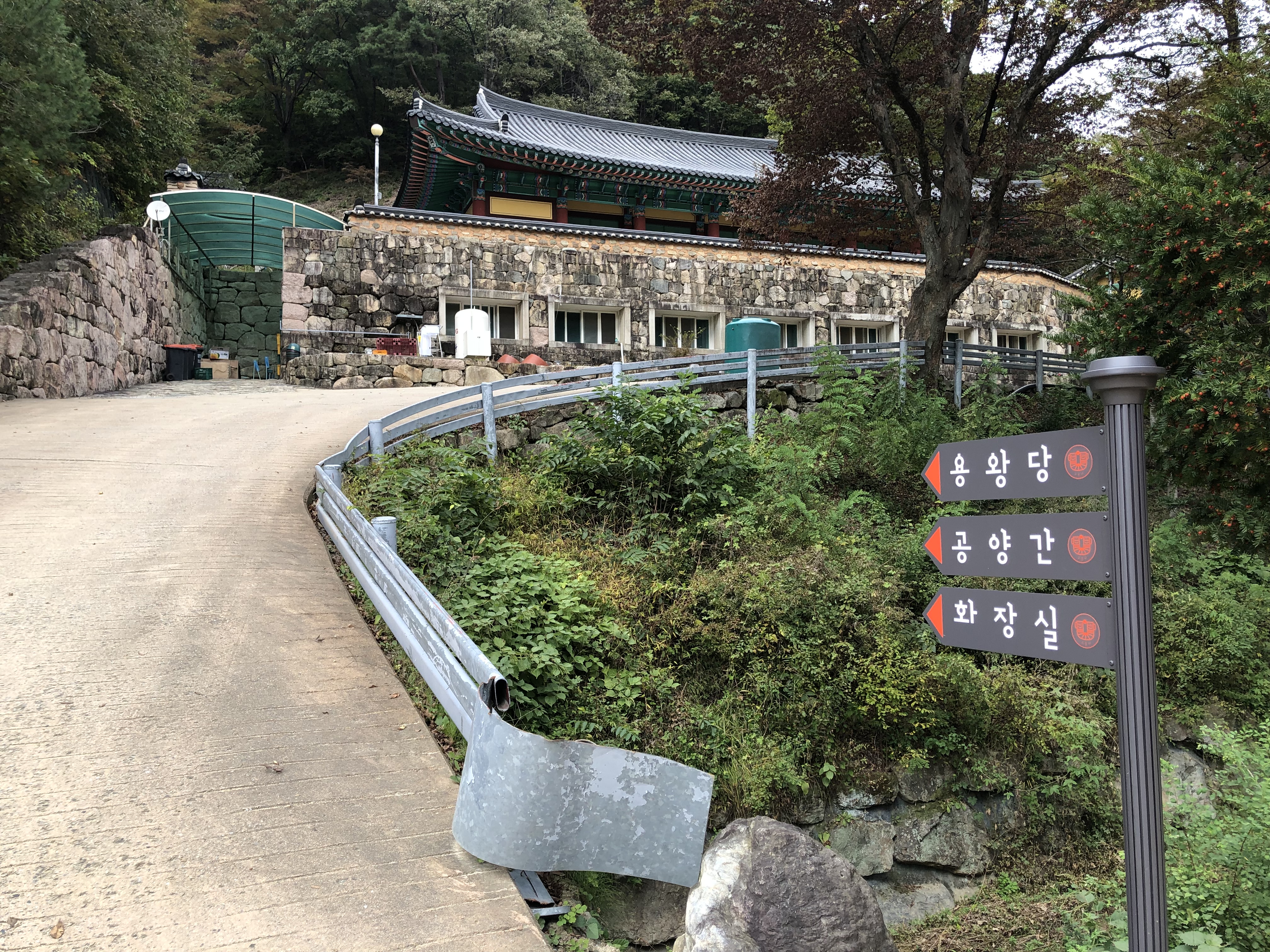 이정표가 있다. 이 위로 올라가면 화장실과 공양간이 있나 보다.
