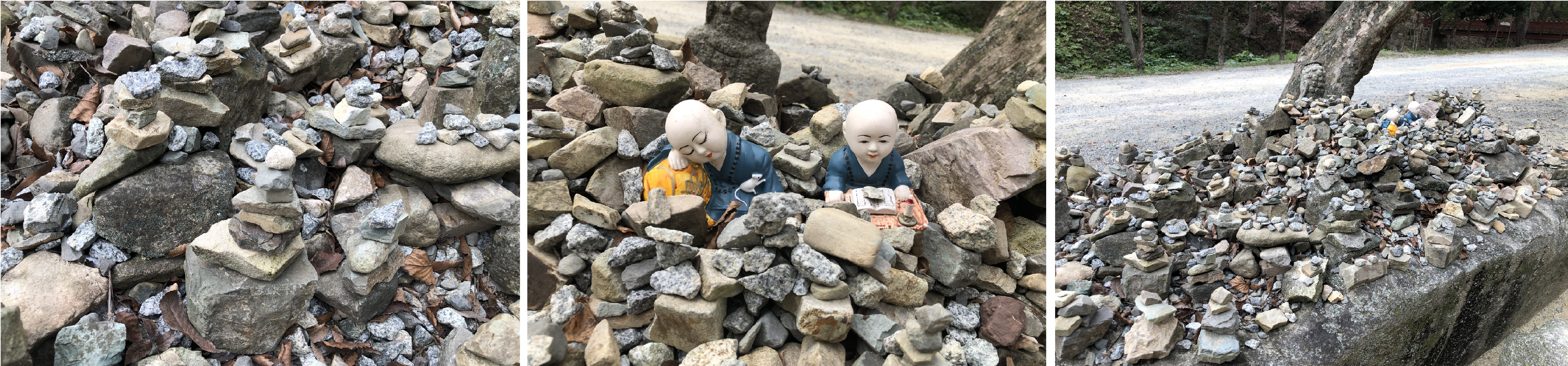 왼쪽에 나무 한 그루가 위태롭게 서 있는데 그 역사가 꽤나 오래되었는지 나무옆에 있는 큰 바위 위에 작은 돌멩이를 이용하여 돌탑을 쌓은 모양새가 눈길을 끈다.