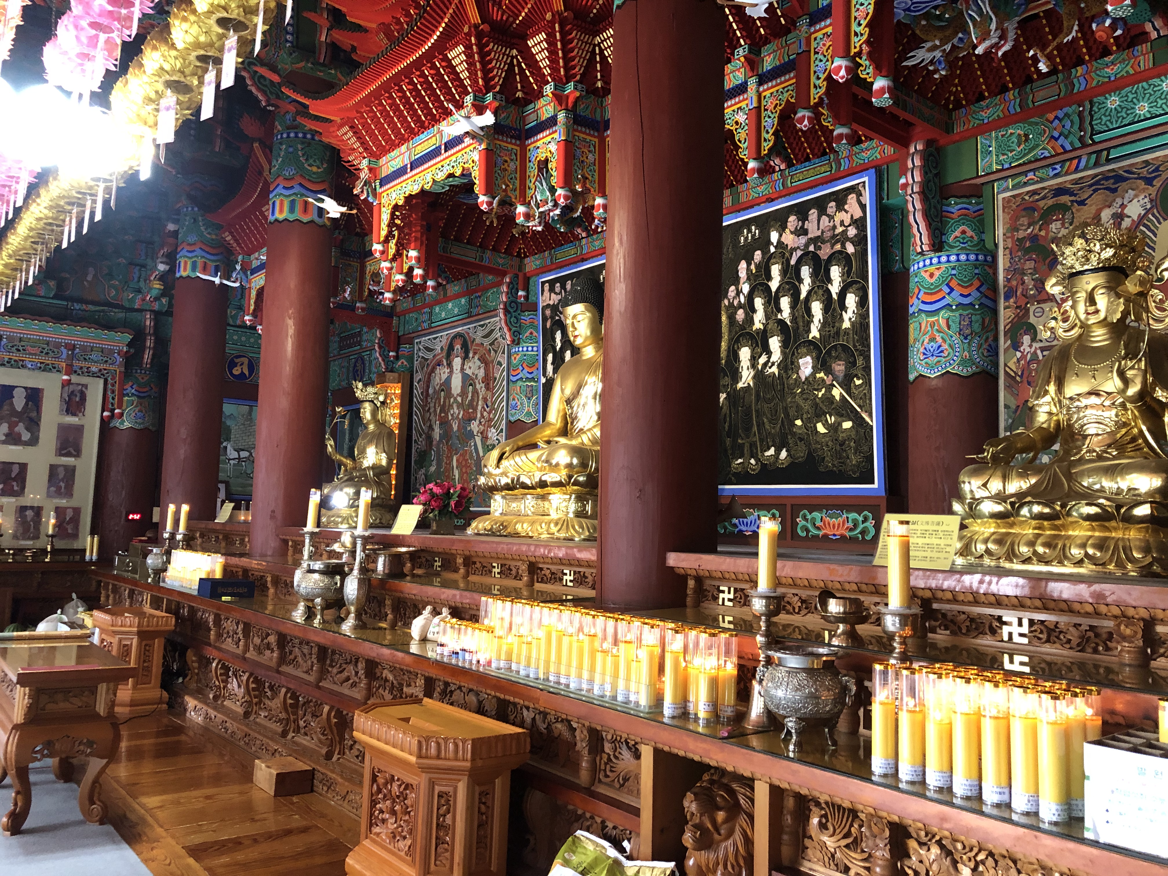 갈림길에서 어느 전각부터 갈까 고민하며 혼란스러워하다가 대웅보전을 가기로 한다.평탄화가 잘 된 지면에 반듯하게 서 있는 모습이 대단히 웅장하다.팔작지붕으로 날개 펼친 듯 하니 보기 좋