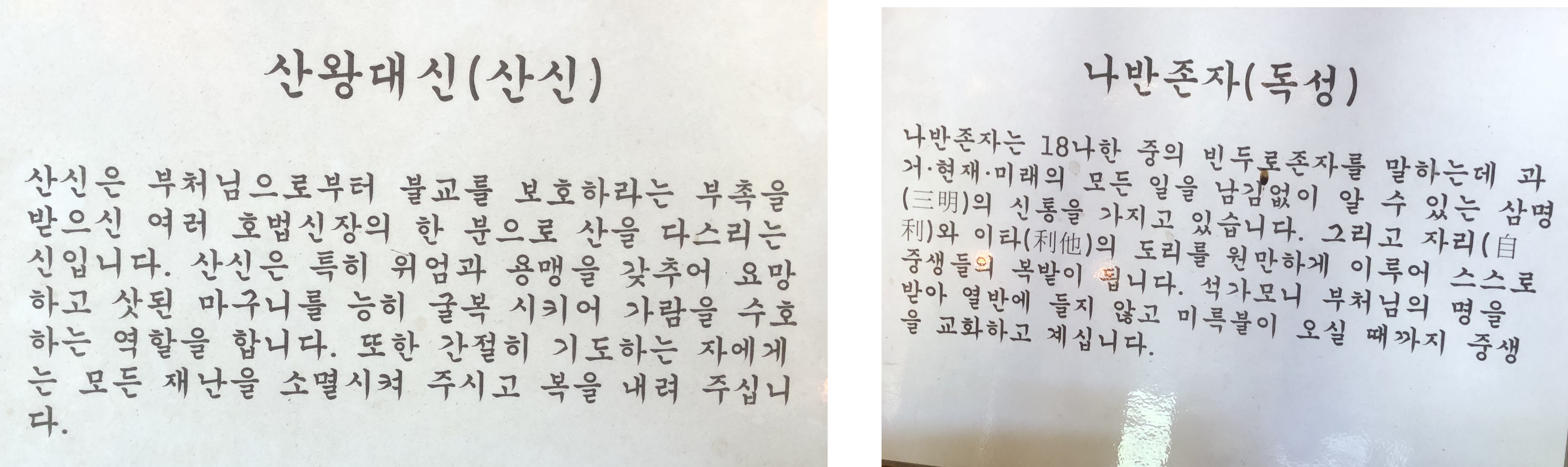 삼성각이나 산신각과 같은 전각은 항상 산속에 있는 듯 가장 높고 가장 깊은 곳에 자리하는 것이 일반적이다.