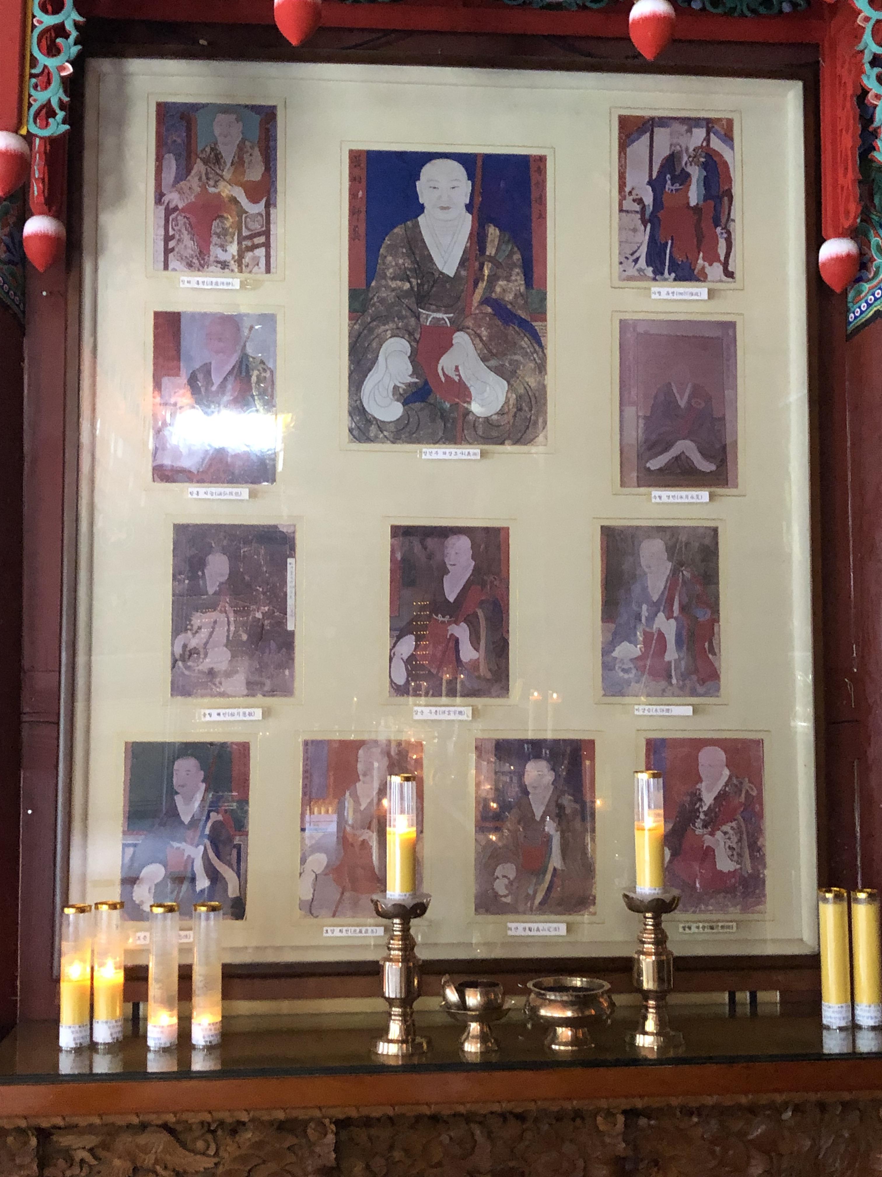 왼쪽 벽면에 역대 조사님들의 진영으로 보이는 그림들이 걸려있다.