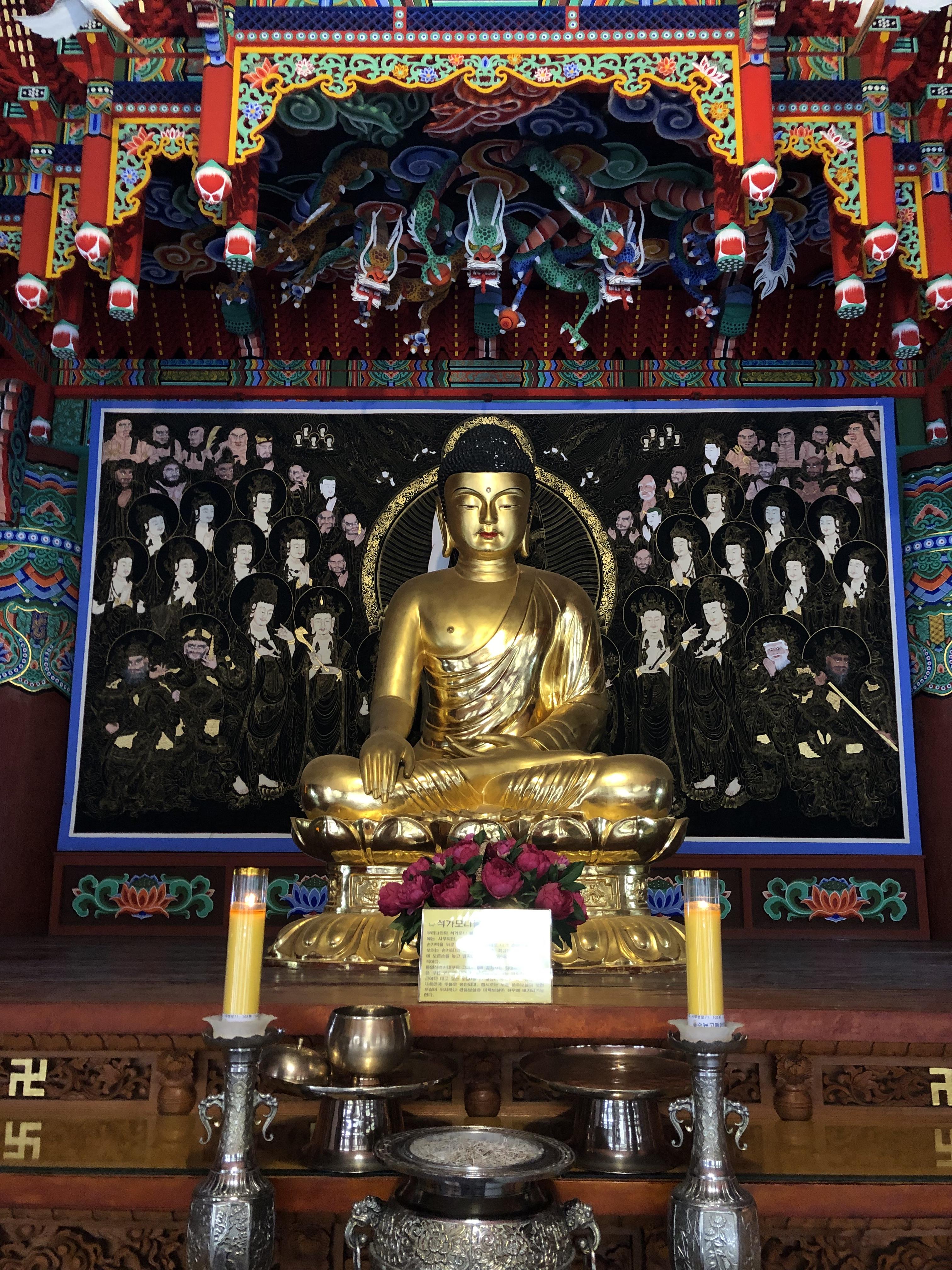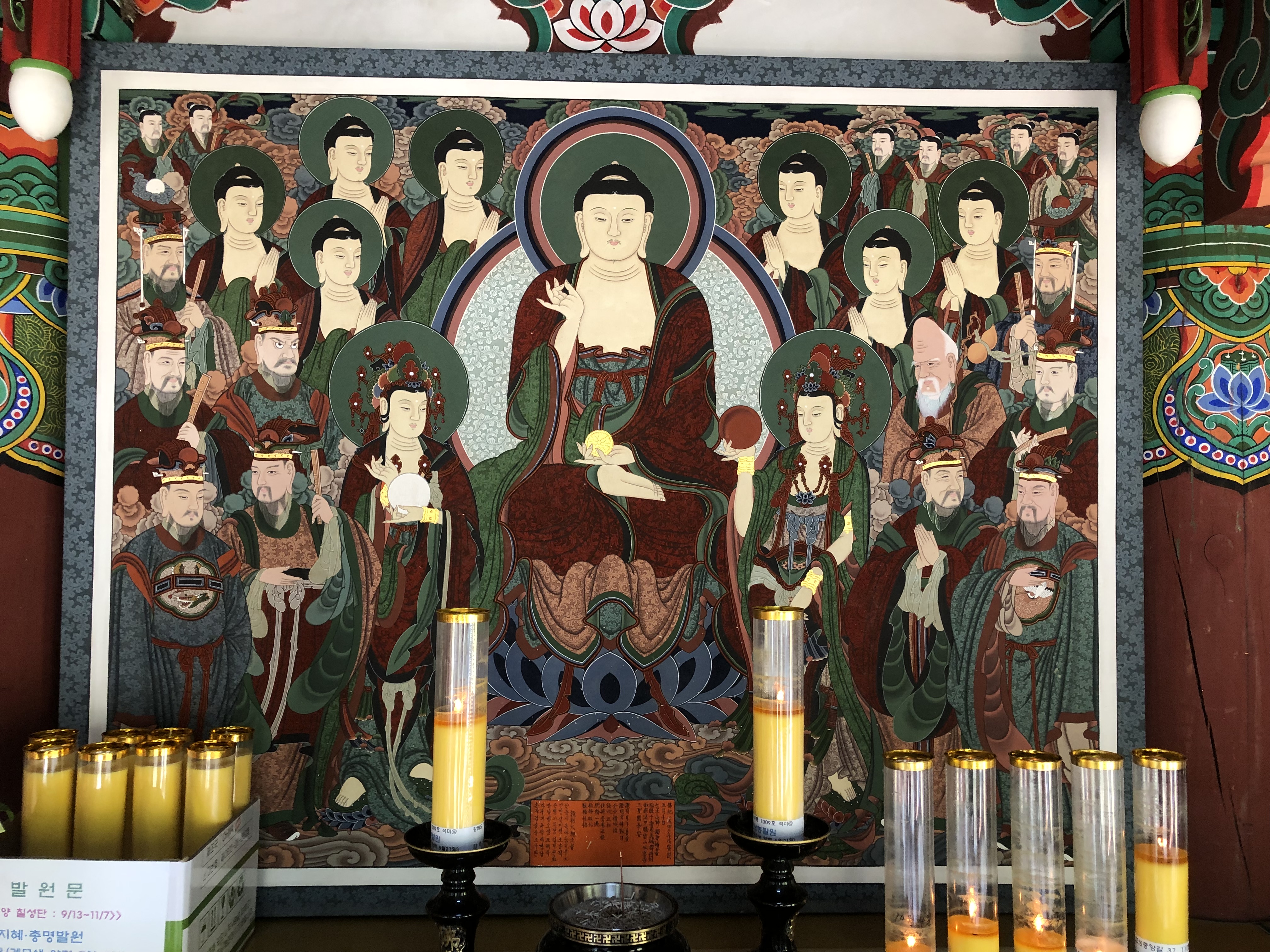 세 분의 불보살님들과 화엄성중이 모여 대웅보전에 자리하고 계신다.