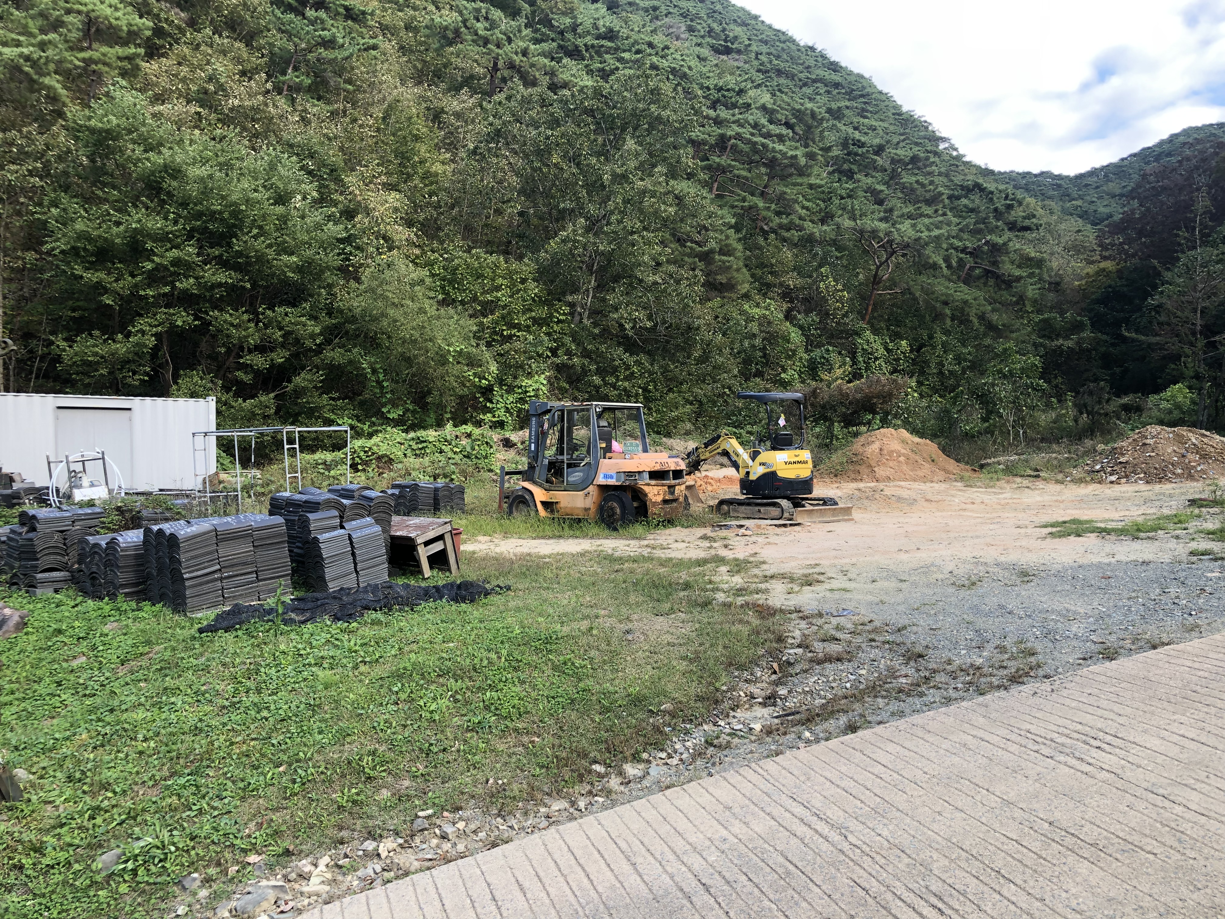 길 옆에는 공사를 하려는 건지 중장비들이 있다.