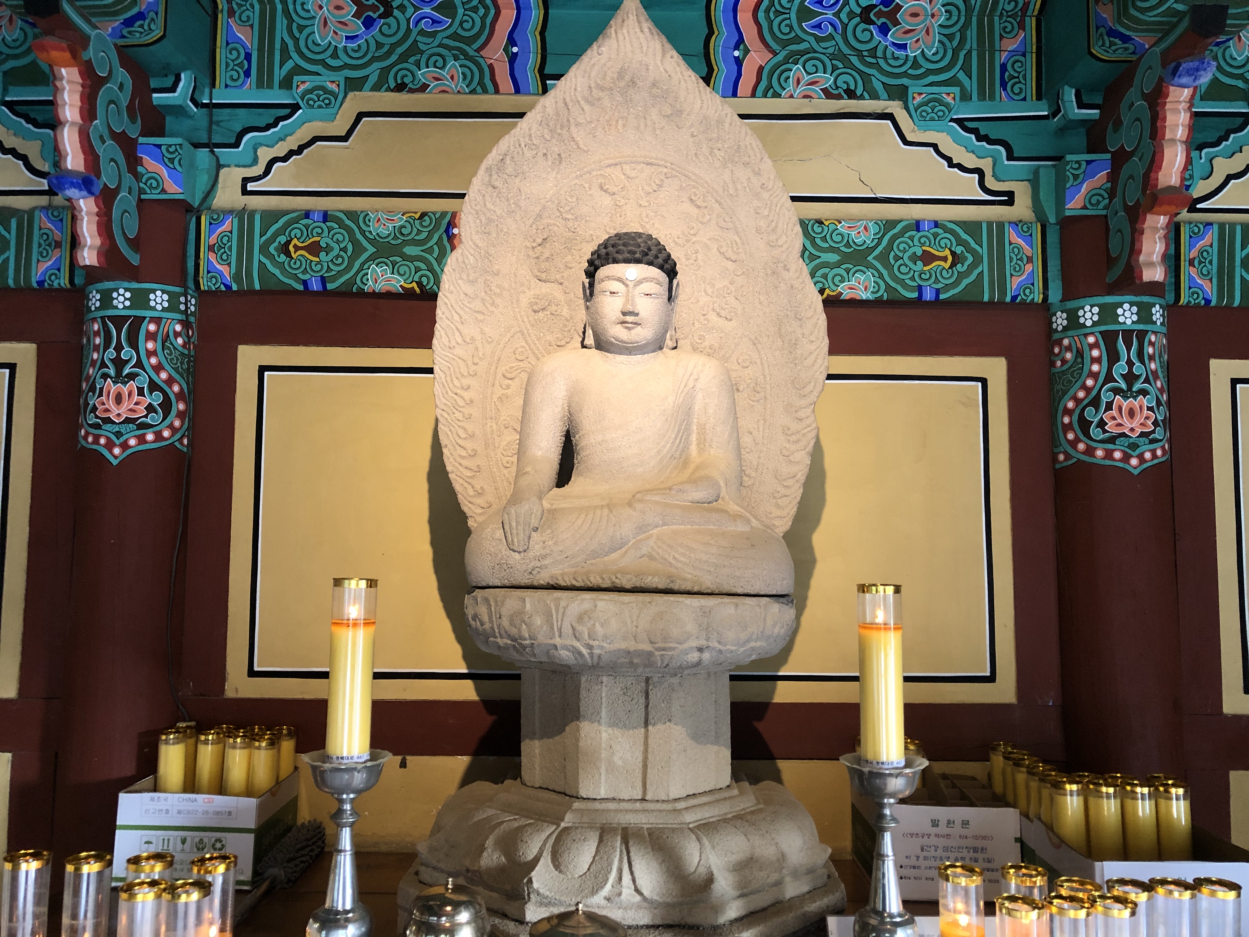 항마촉지인을 하고 계시고 약병도 없으니 석가모니불이 아닌가? 하는데...