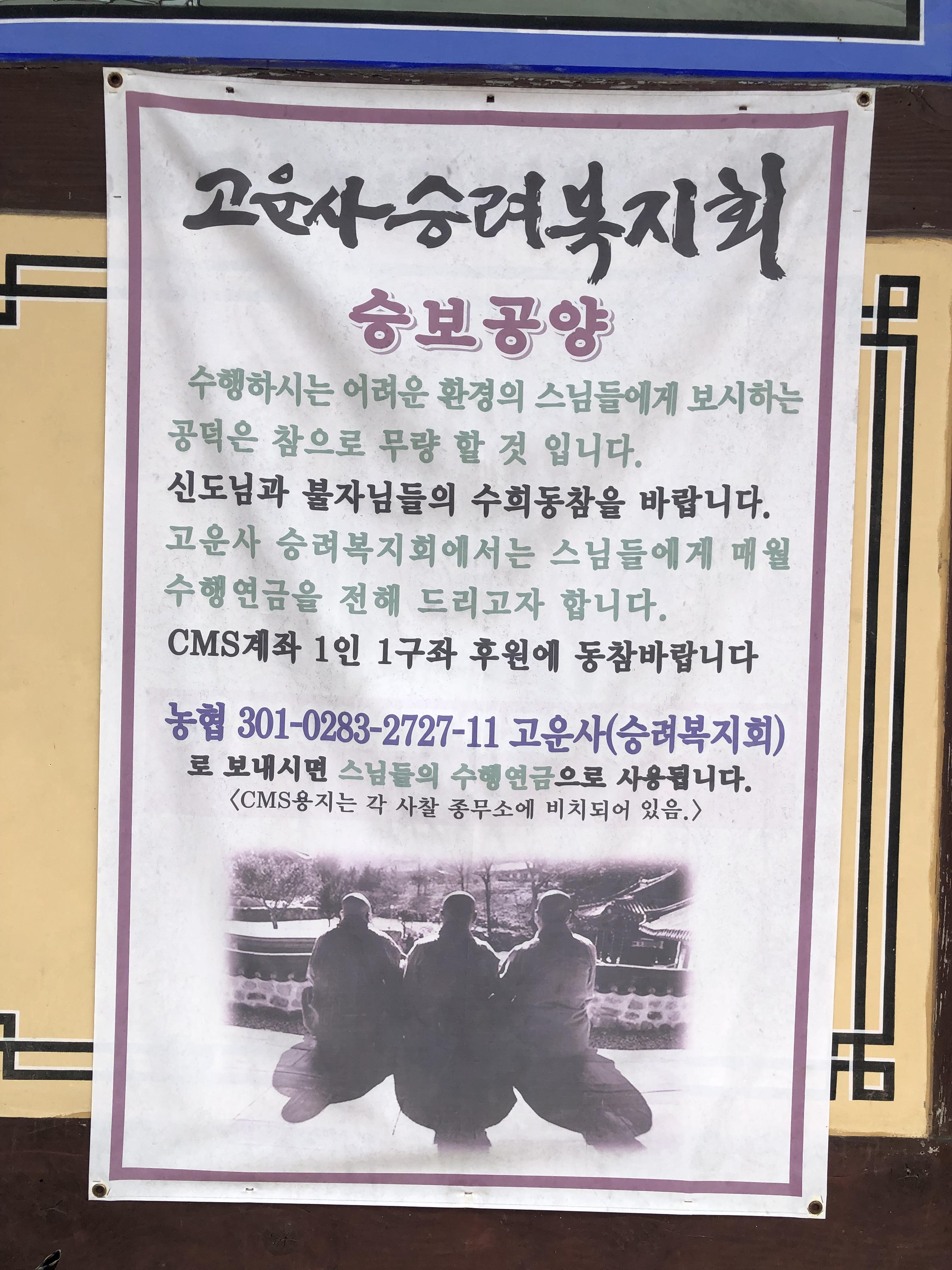 계좌는 농협 : 301-0283-2727-11 고운사(승려복지회)