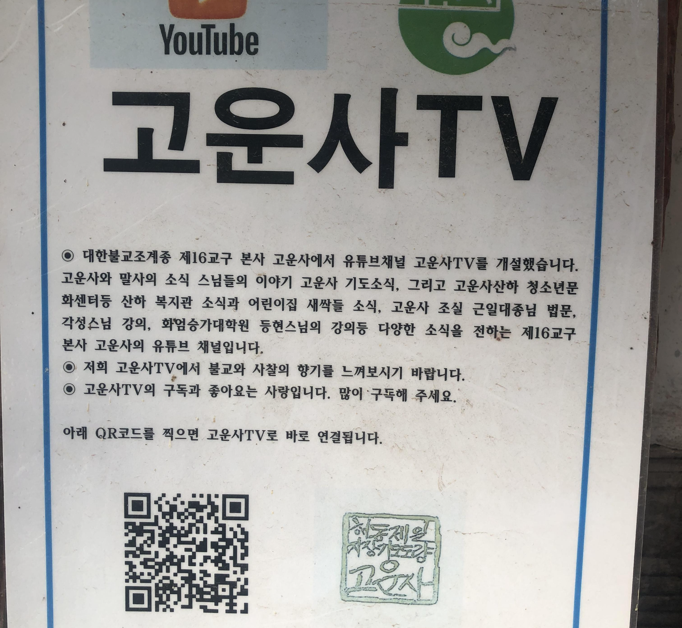 고운사 TV라는 유튜브 채널이 있어서 고운사의 소식을 들을 수 있다.
