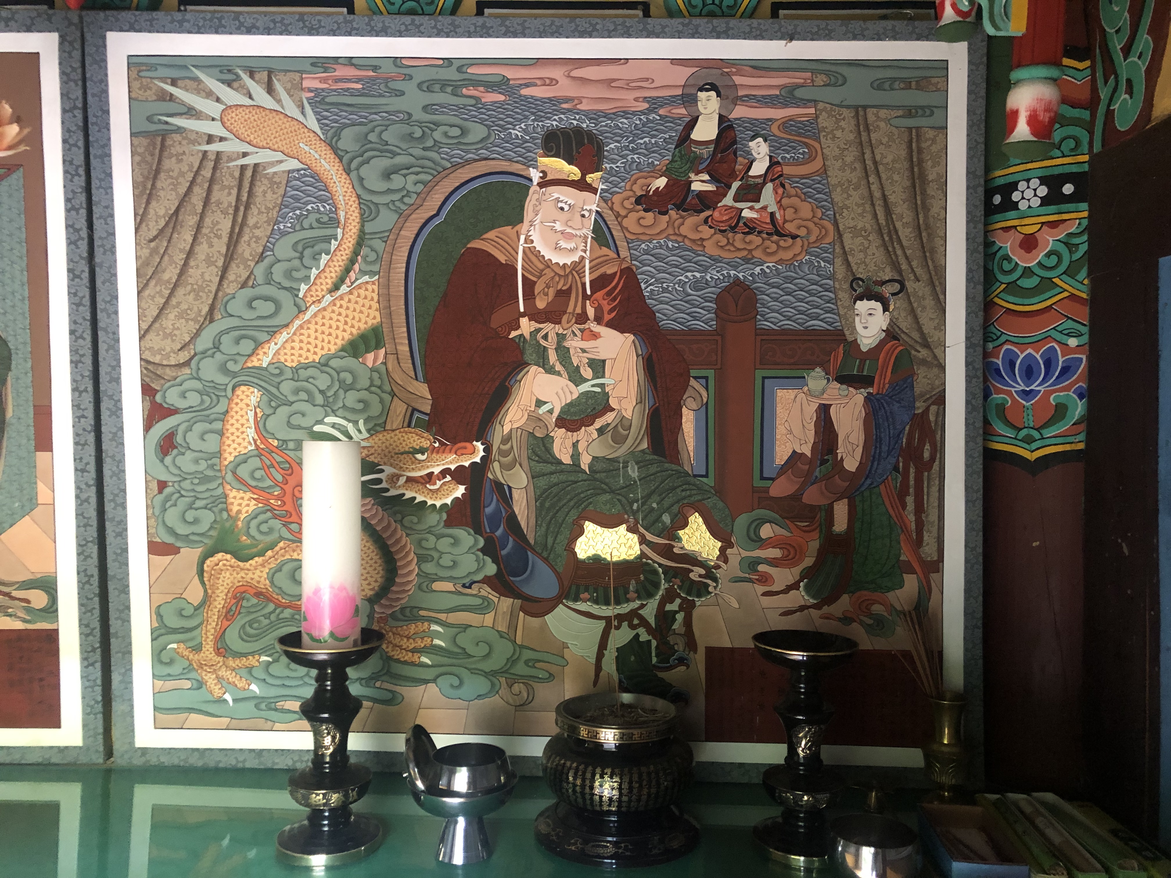뿔을 들고 용을 거니시는 이 분이 용왕님인 듯하다.