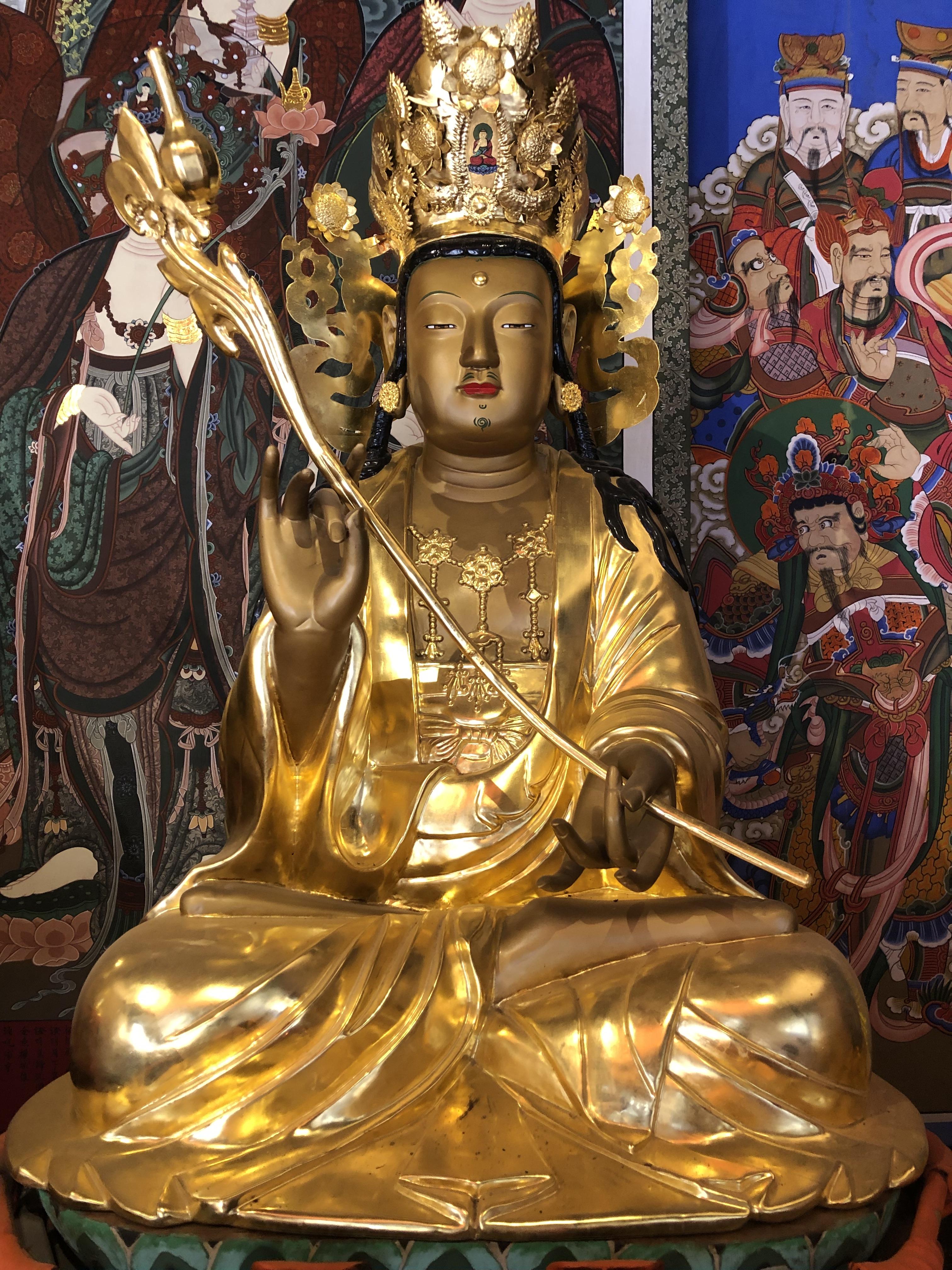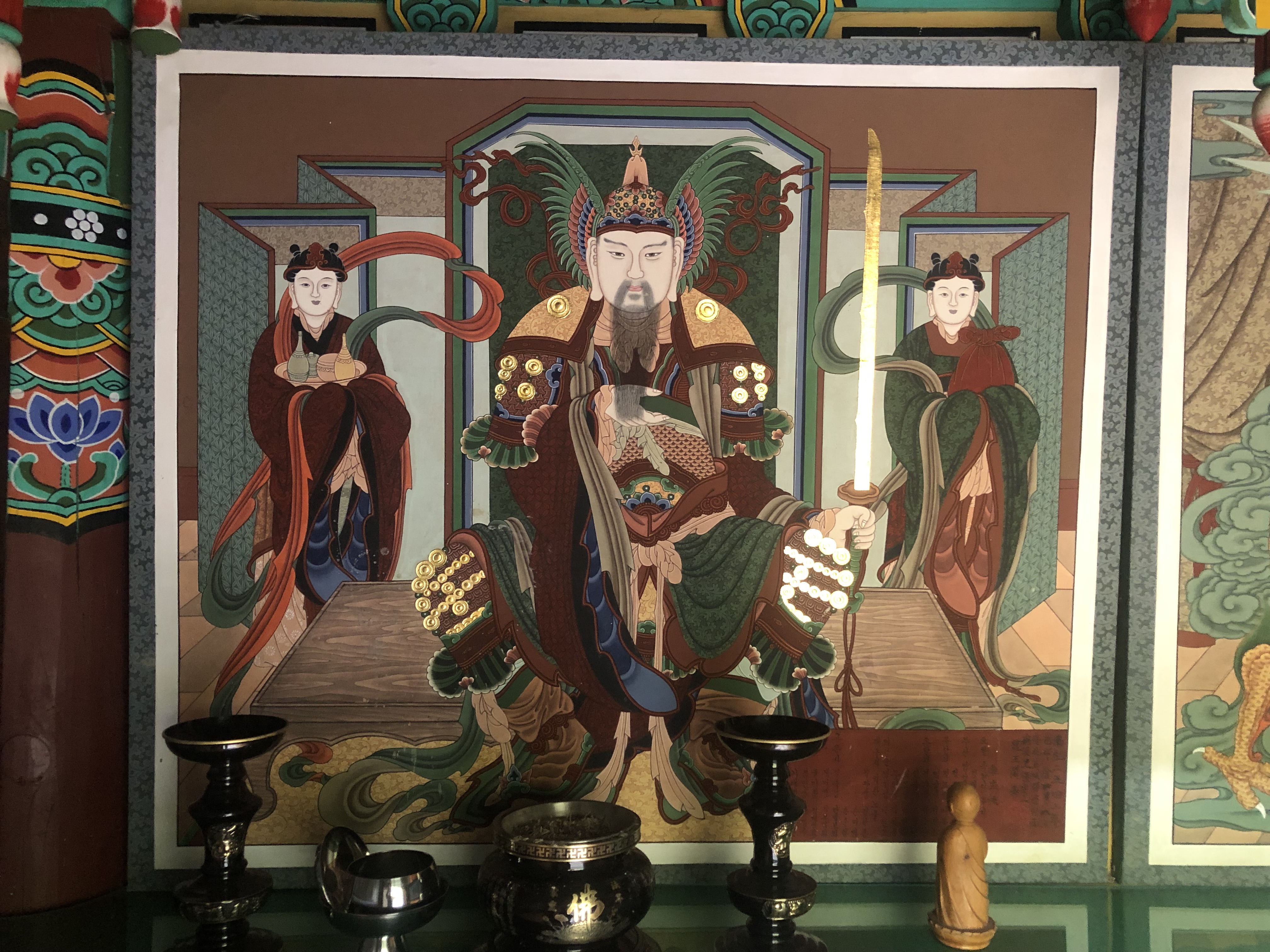 신중단에 보면 동진보살이라도 새의 깃털의 관을 쓴 분이 중앙에 계시는 것을 보곤 한다.