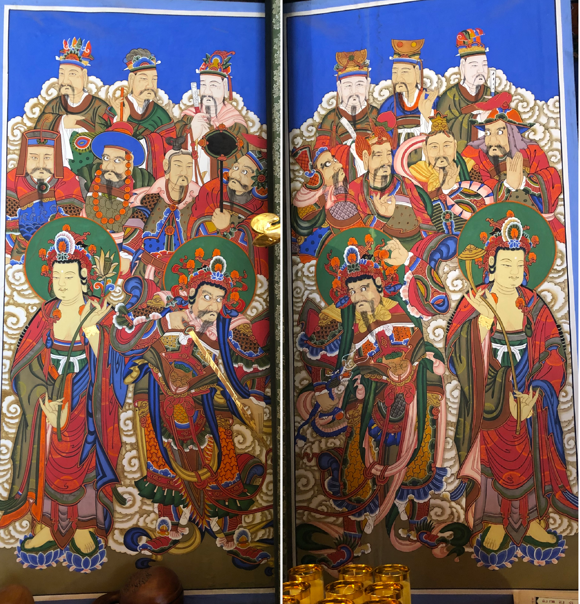 좌 우에 있던 문수보살과 관세음보살님의 뒤에 있던 탱화이다.