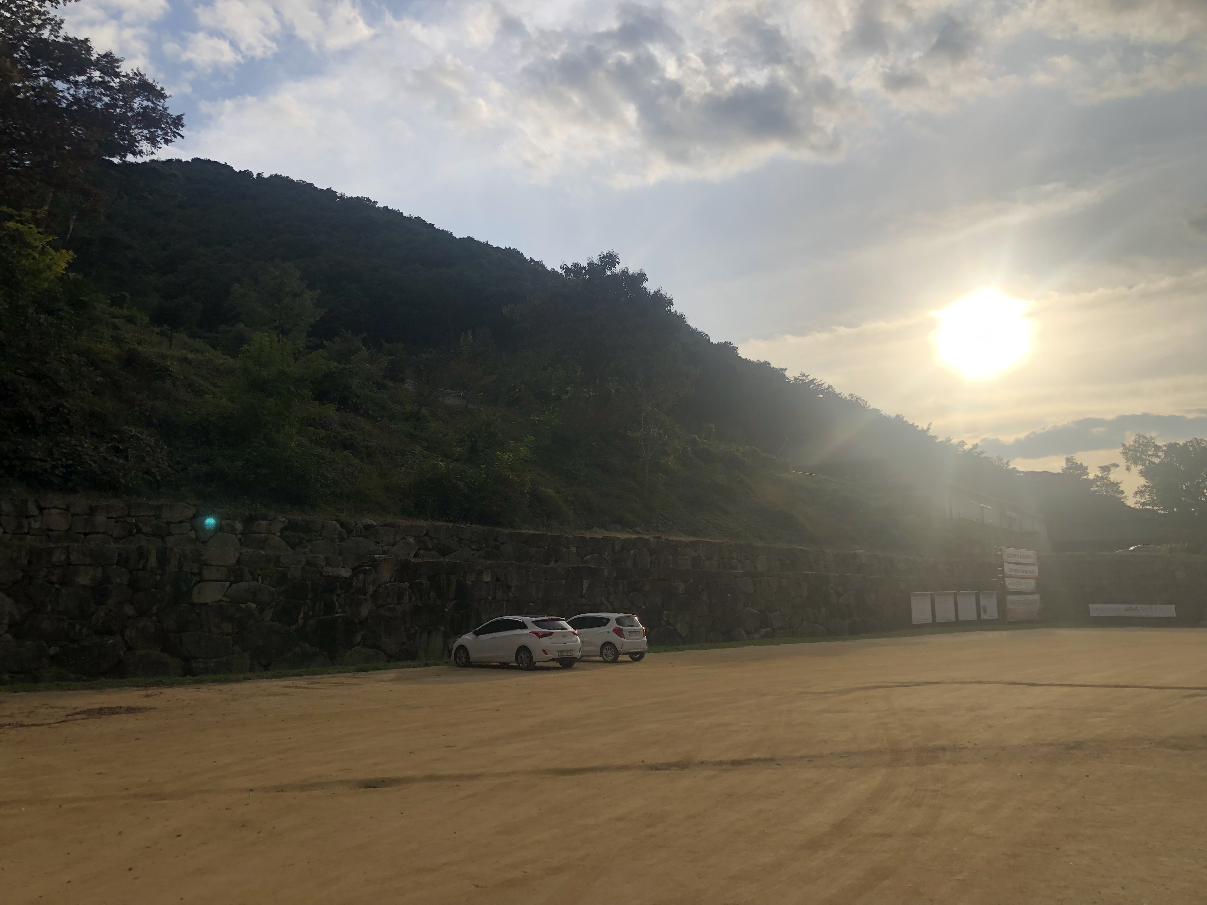주차장의 입구 쪽인 저 멀리 오르막길을 오르면 템플관이 나온단다.