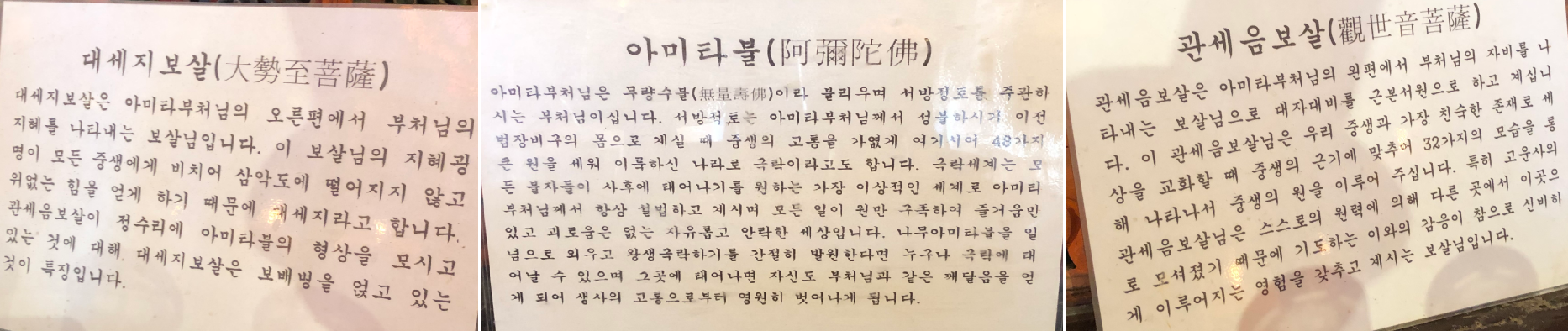 아미타불과 좌우에 보살님이 보인다.