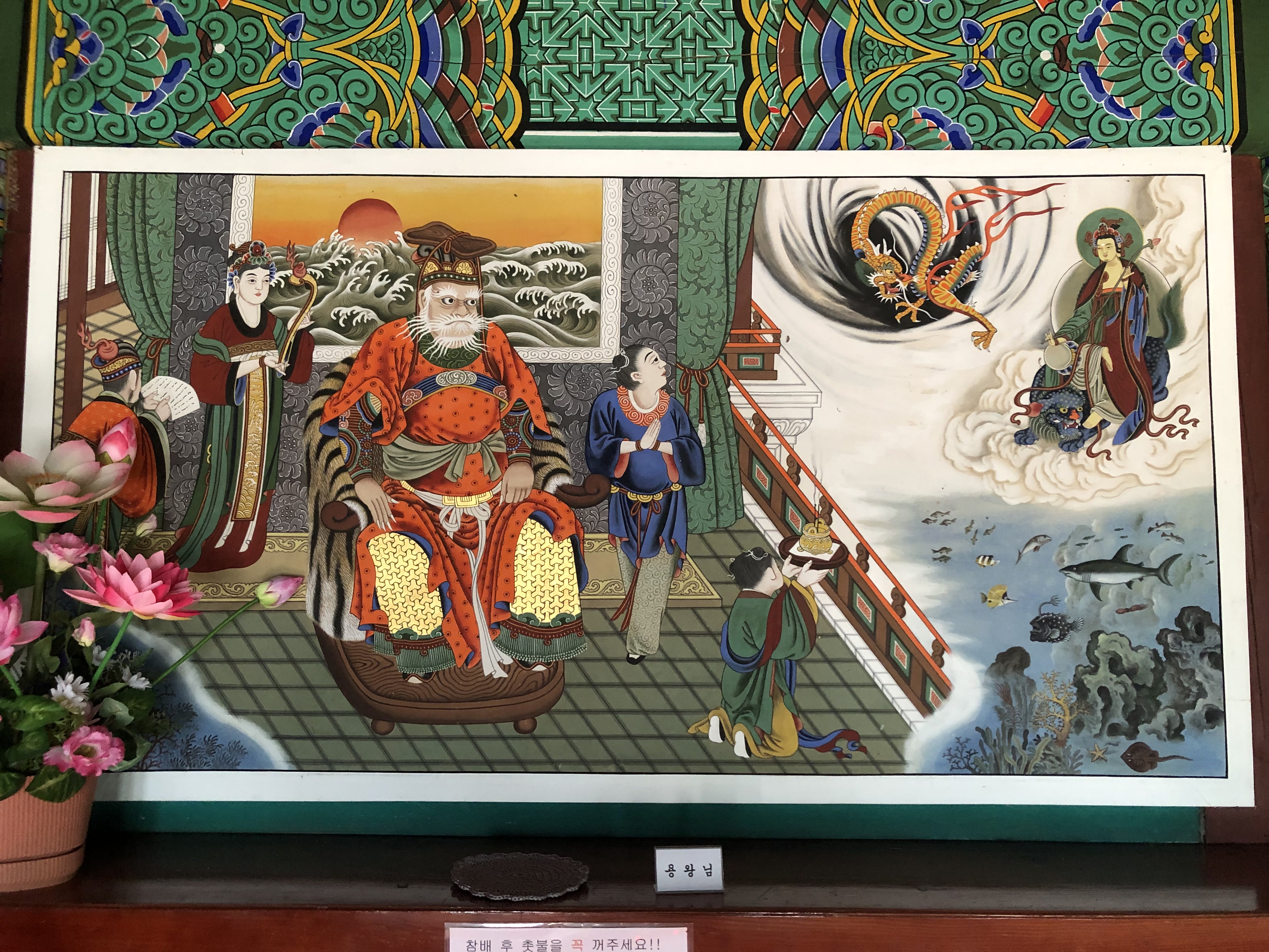 보통은 산신, 칠성, 독성 이렇게 세분이 계시는데 이곳에는 용왕님이 계신다.