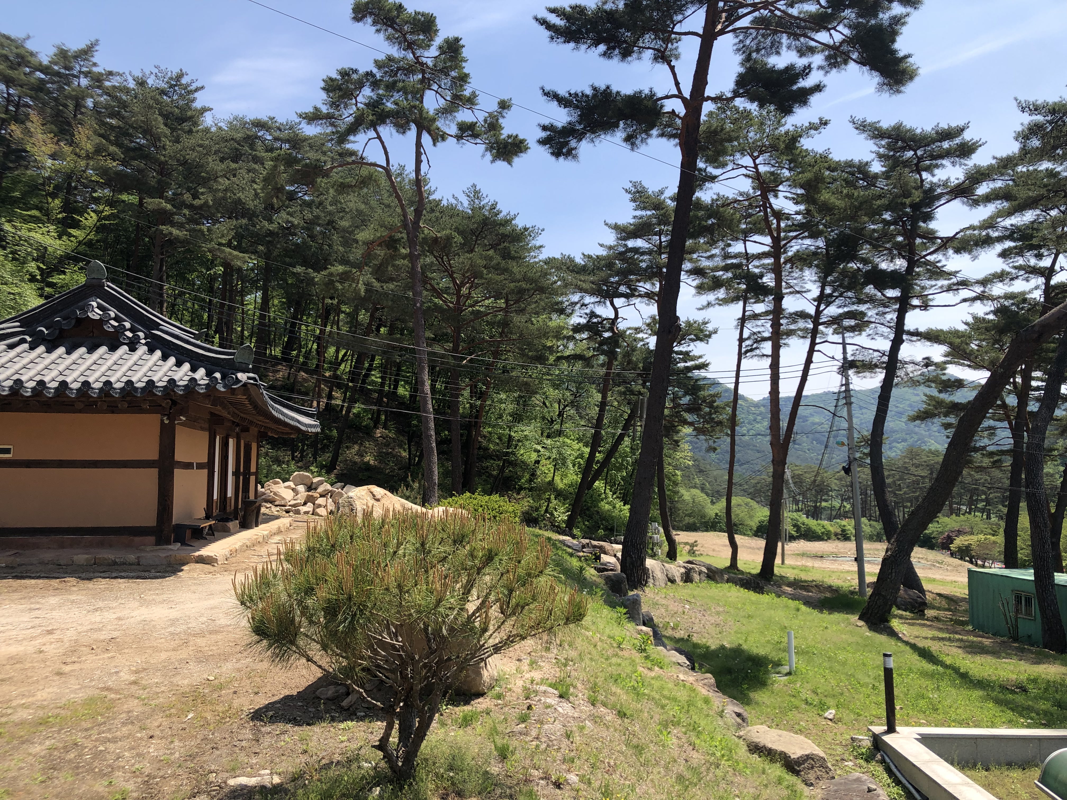넓은 마당과 극락전과 산과 하늘이 이상적이다.