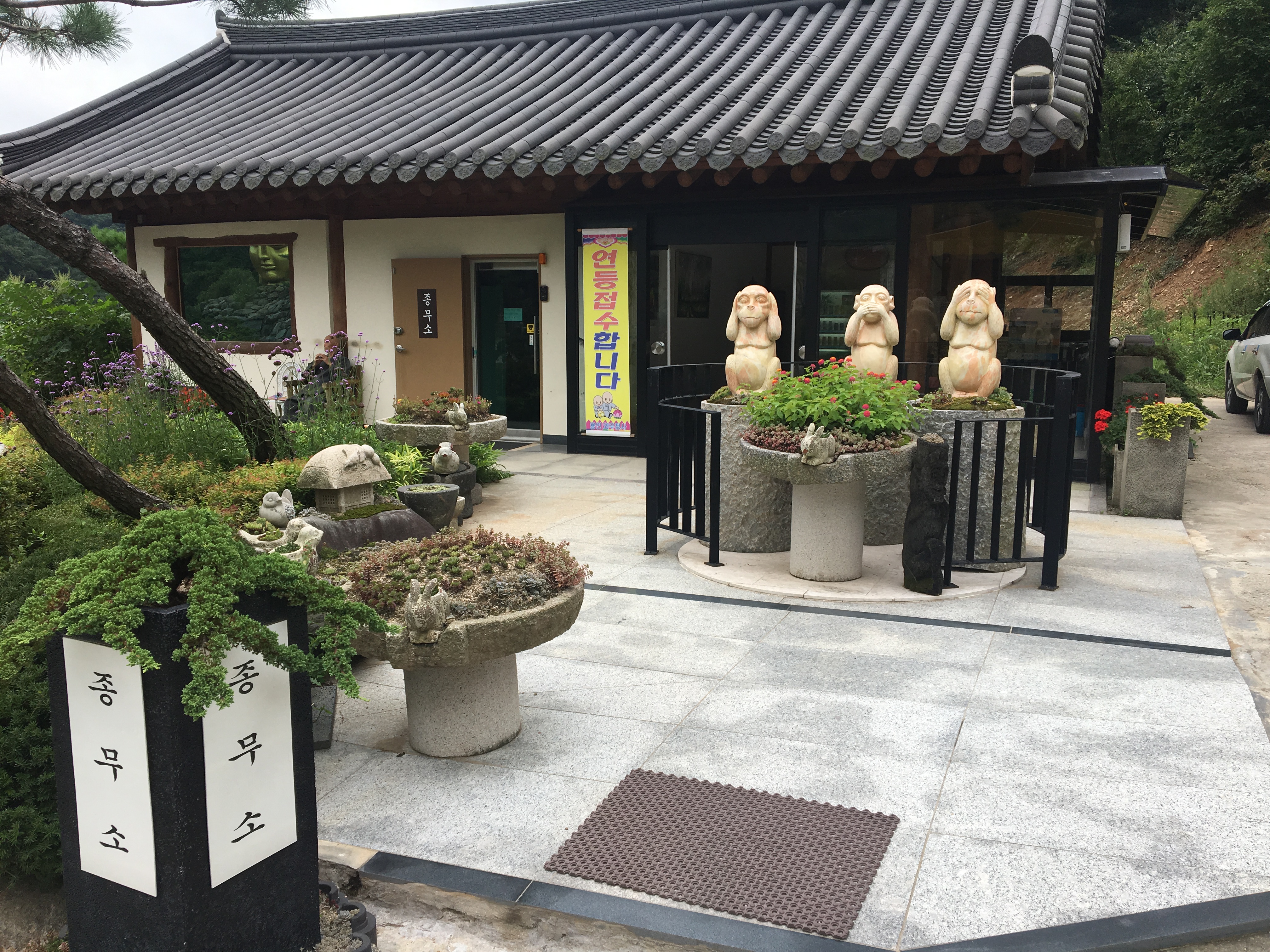 저 멀리 기왓장에 거북이가 아파요라고 글이 쓰여있다.
