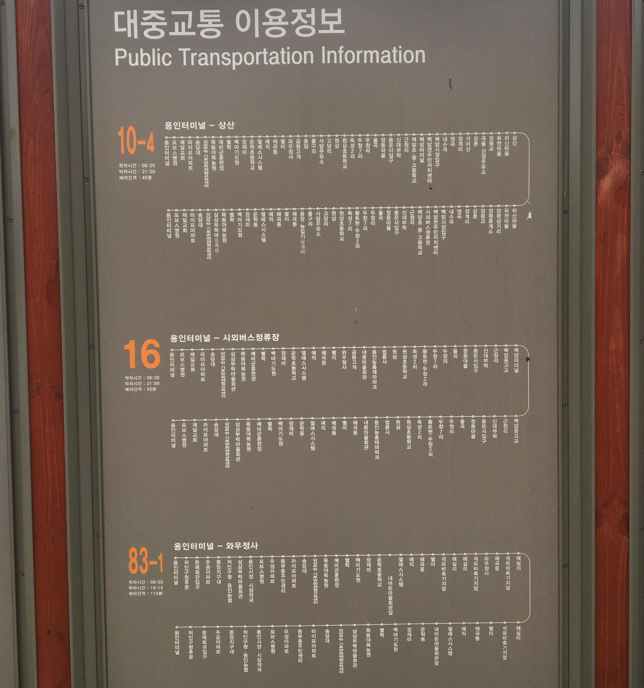 버스를 타고 오고 가기 위해선 버스노선표가 있으면 좋다.